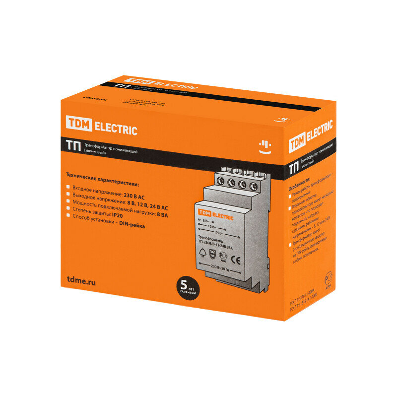 Трансформатор понижающий ТП-230В/8-12-24В 8ВА DIN-рейка TDM интересное: