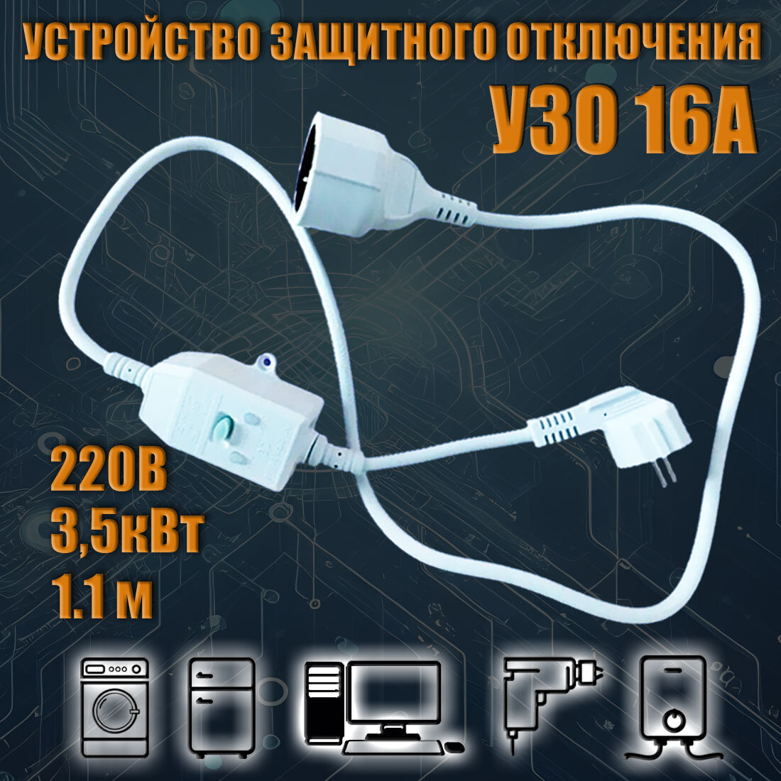 Удлинитель с УЗО 16А, 3,5 кВт, 220В, 1,2 метра для бытовой техники, водонагревателей и строительных инструментов интересное: