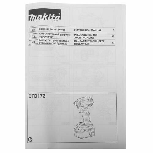 Аккумуляторный ударный винтовёрт Makita DTD172RTJ (18V, 2x5.0Ah, Li-Ion, MakPac)