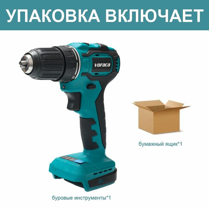 Аккумуляторная дрель-шуруповерт, бесщеточный двигатель, многоскоростная регулировка крутящего момента, 21 В, 90 Нм (2 аккумулятора и 1 зарядное устройство)