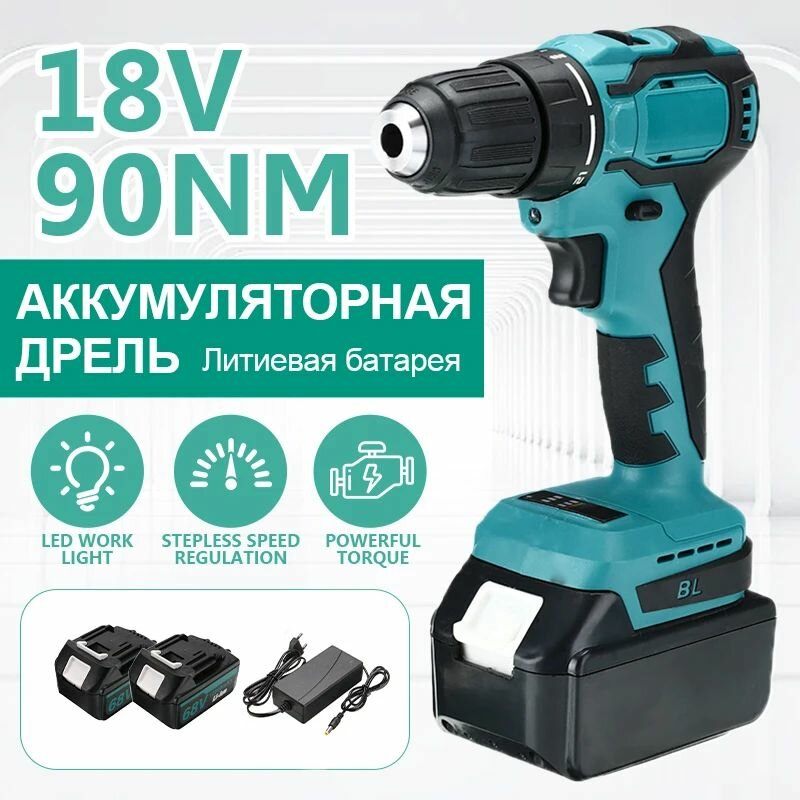 Купить Аккумуляторная дрель-шуруповерт,бесщёточный двигатель,21 В, 90 Нм, 2 АКБ и 1 ЗУ