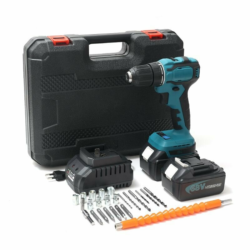 Аккумуляторная дрель-шуруповерт, бесщеточный двигатель, многоскоростная регулировка крутящего момента, 21 В, 90 Нм (2 аккумулятора и 1 зарядное устройство)