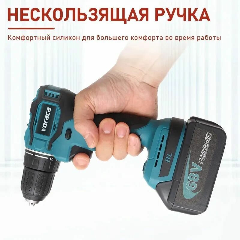 Аккумуляторная дрель-шуруповерт,бесщёточный двигатель,21 В, 90 Нм, 2 АКБ и 1 ЗУ