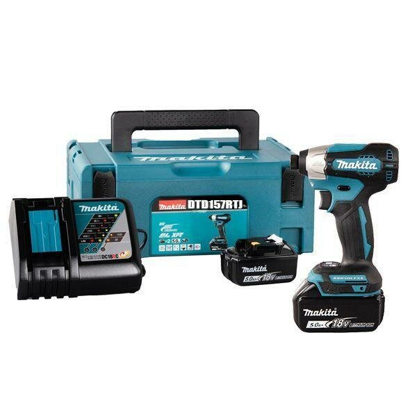 Аккумуляторный ударный шуруповерт Makita DTD157RTJ, с 2 АКБ 5 Ач и ЗУ, в кейсе MakPac-2