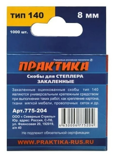 Скобы ПРАКТИКА для степлера, серия Эксперт, 8 мм, Тип 140 толщина, 1,2 мм, ширина 10,6 интересное: