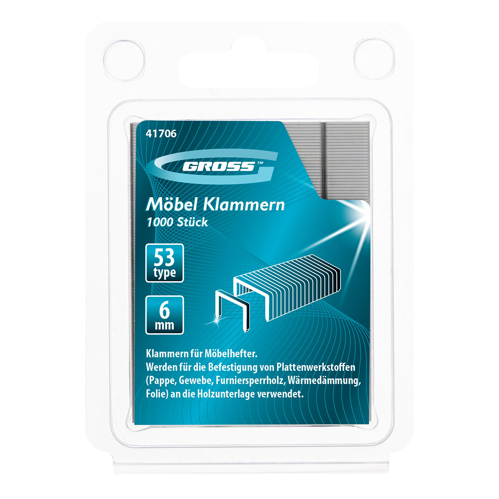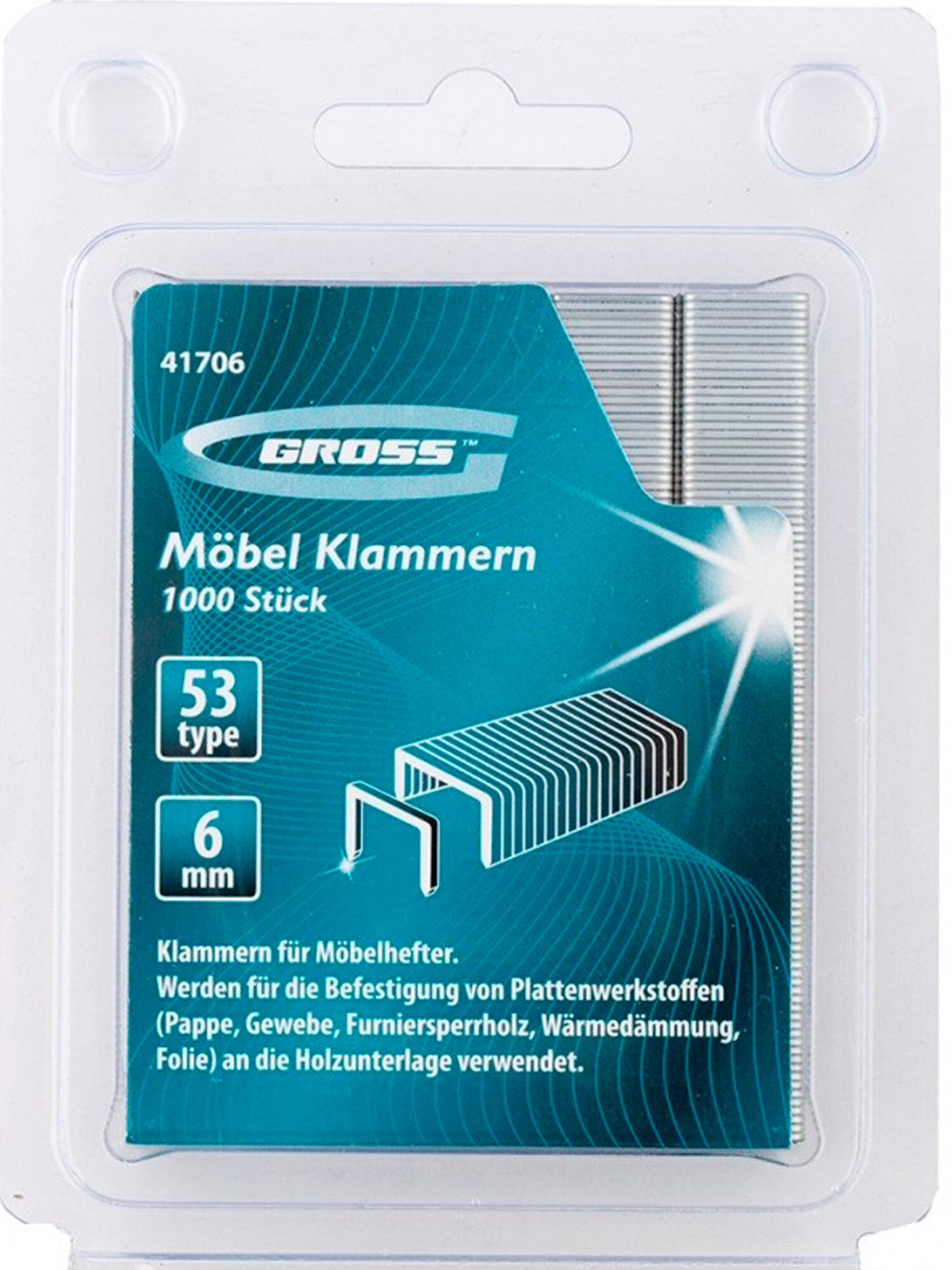Скобы для мебельного степлера Gross 41706, тип 53, 6 мм, 1000 шт., усиленные
