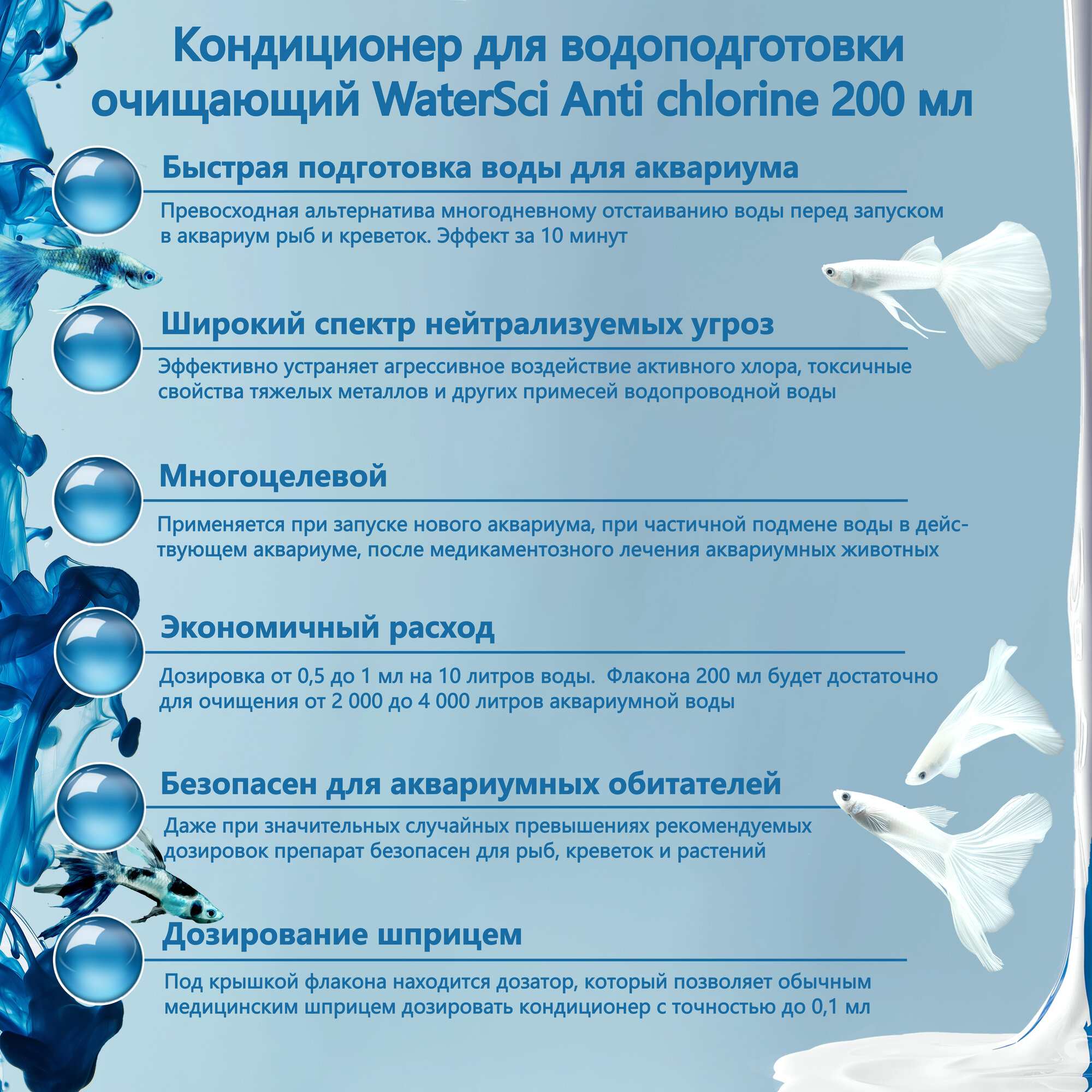 Кондиционер для аквариума очищающий Water Sci. Anti chlorine, 200 мл. интересное: