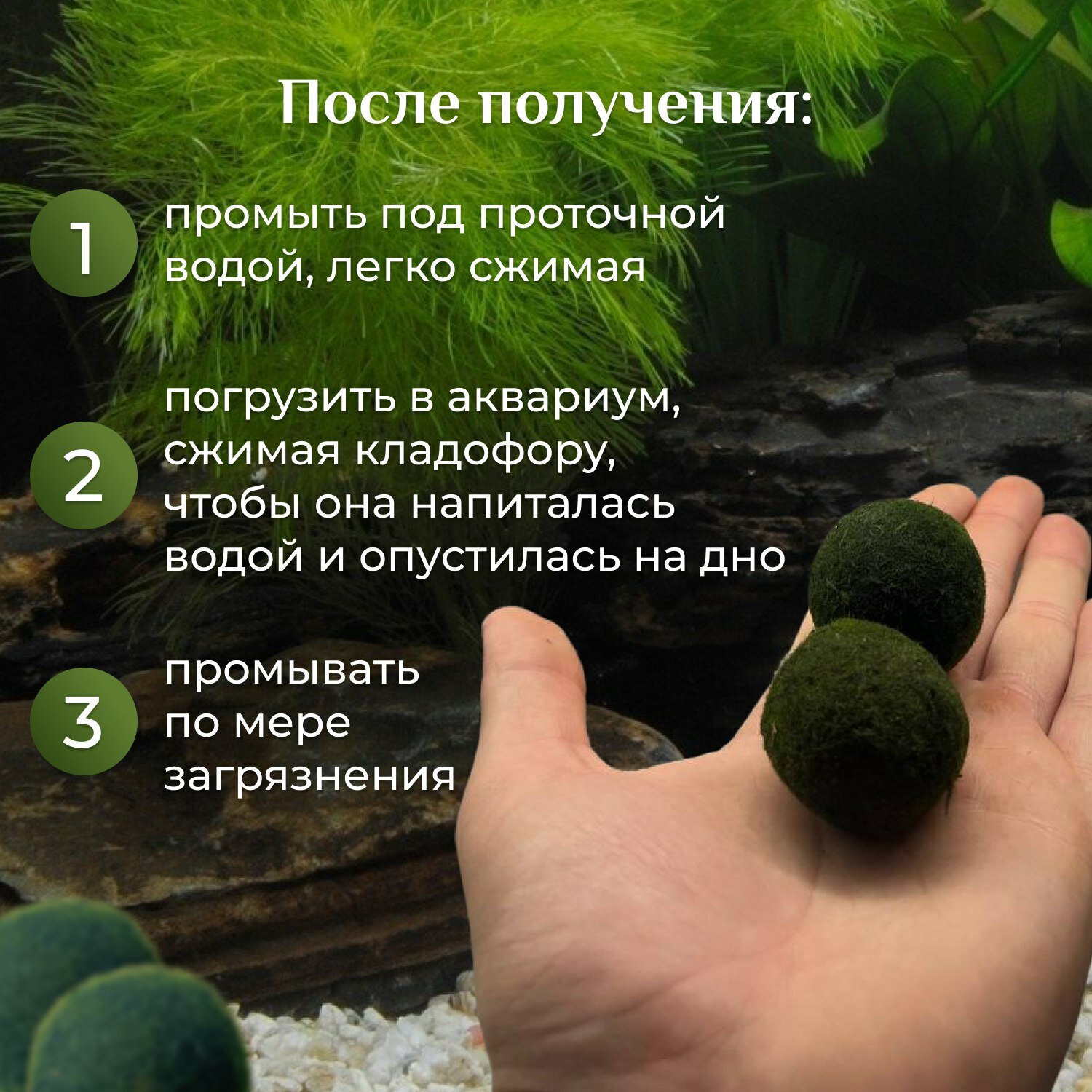 Кладофора шаровидная Маримо (от 8 до 10см) 1 шт + подарок (Aegagropila linnaei). Аквариумное растение. интересное: