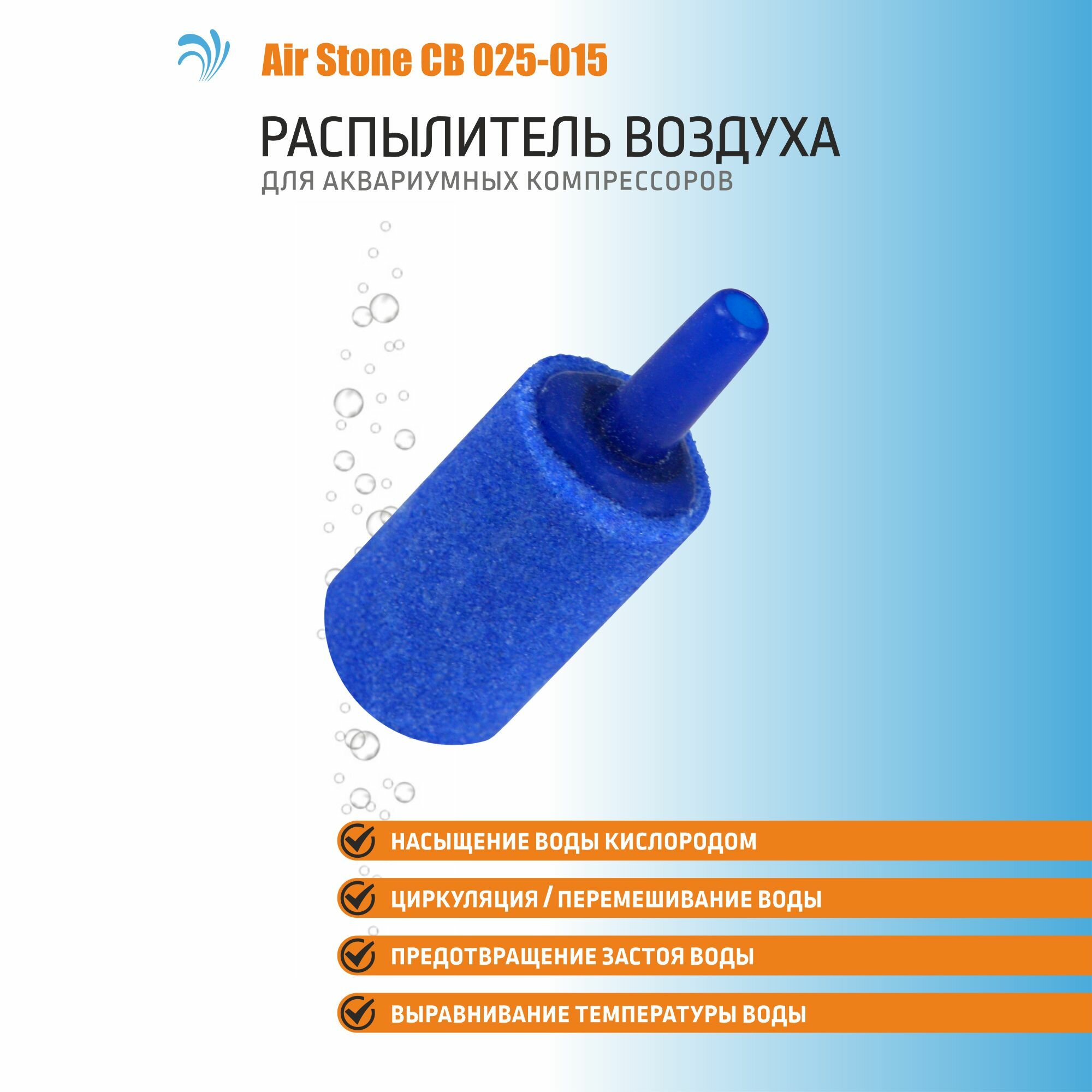 Krelong Air Stone CB 025-015, распылитель воздуха для компрессоров, цилиндр, синий, высота 25мм, диаметр 15мм, (3шт) интересное:
