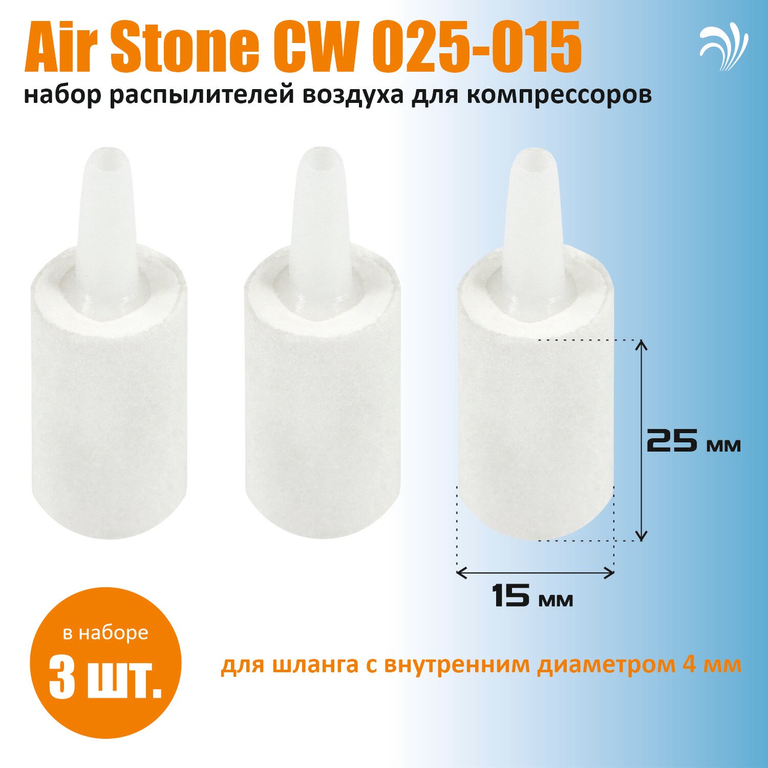 Krelong Air Stone CW 025-015, распылитель воздуха для компрессоров, цилиндр, белый, высота 25мм, диаметр 15мм, (3шт) интересное: