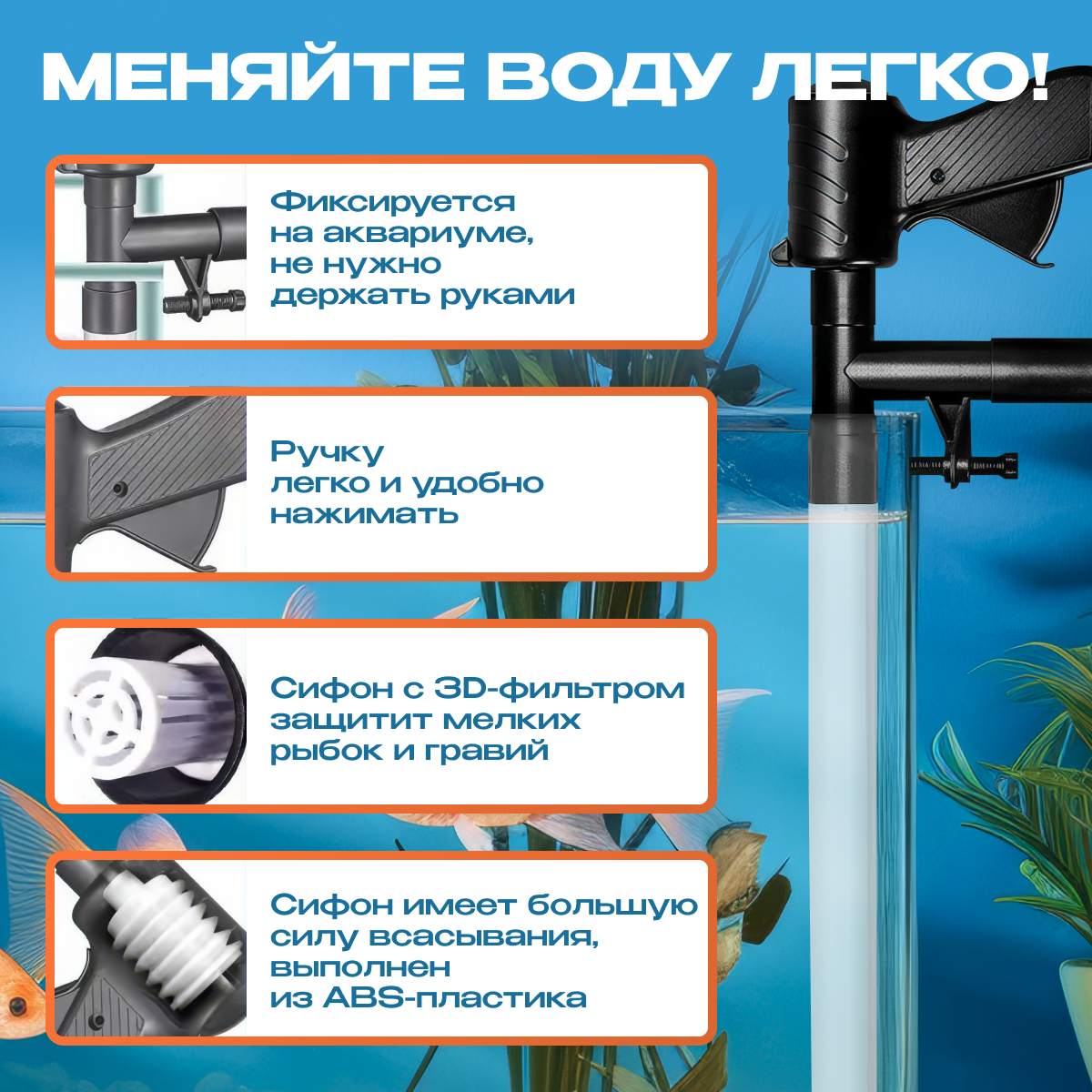 Набор для очистки аквариума, грунтоочиститель для аквариумов c сифоном и скребком интересное: