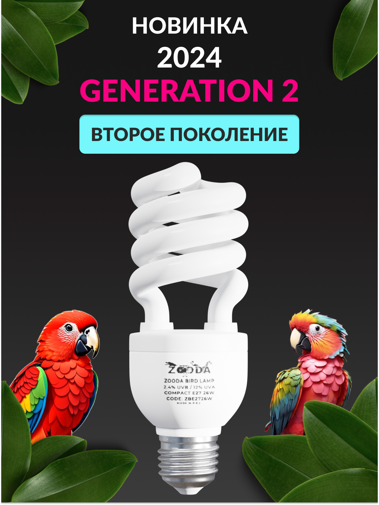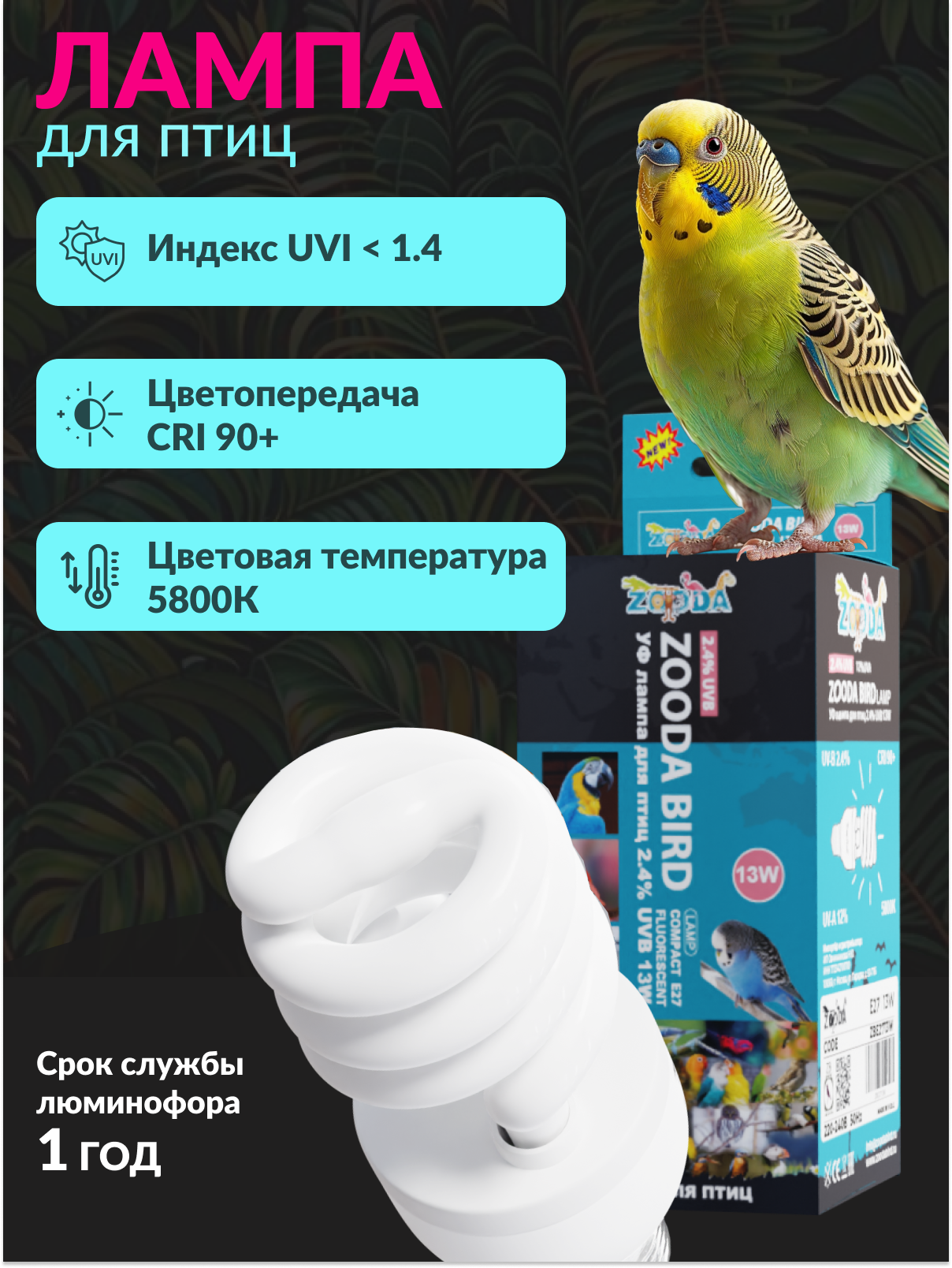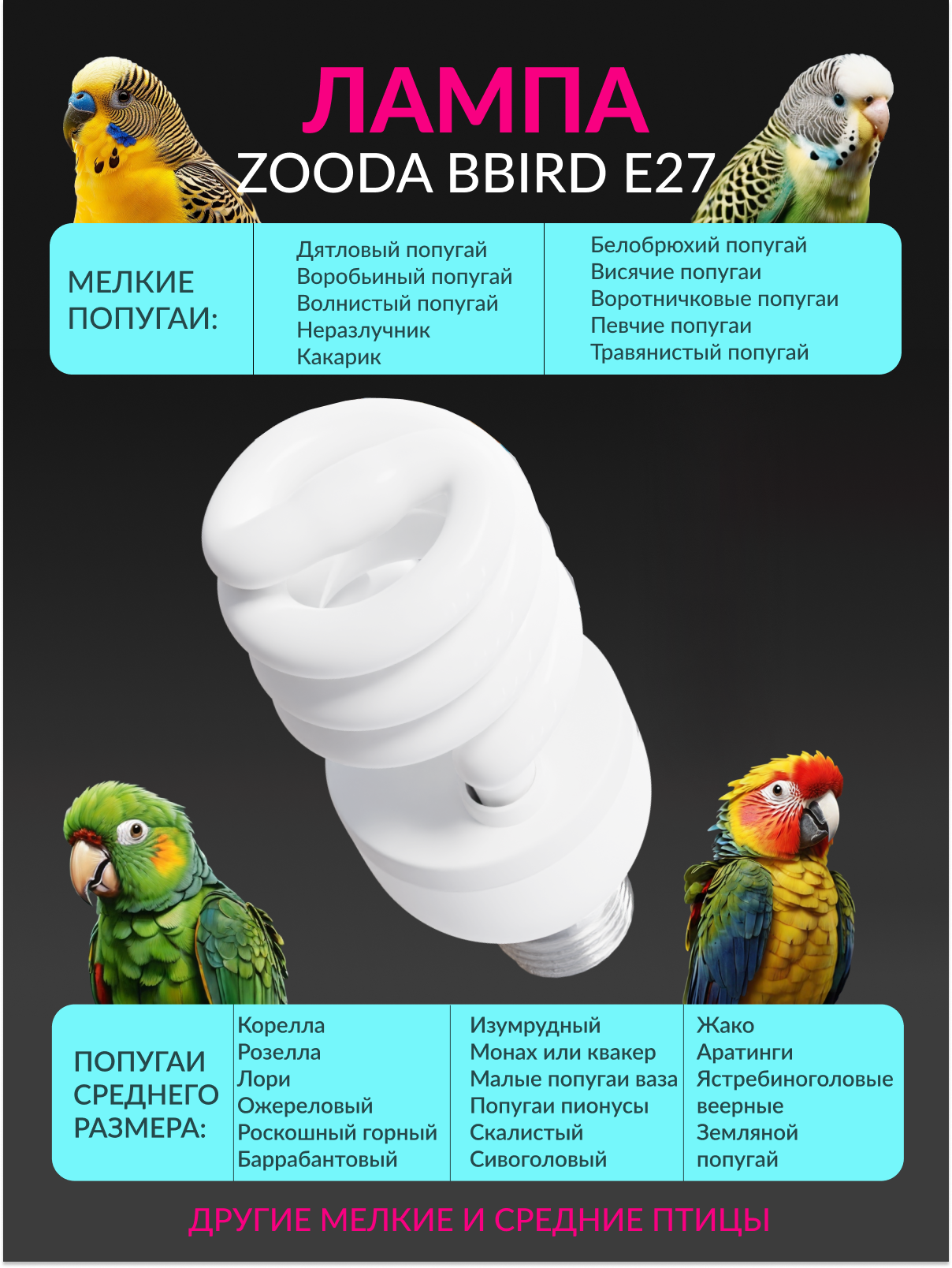 Лампа для птиц и попугаев УФ ZooDA Bird Compact Е27 13w интересное: