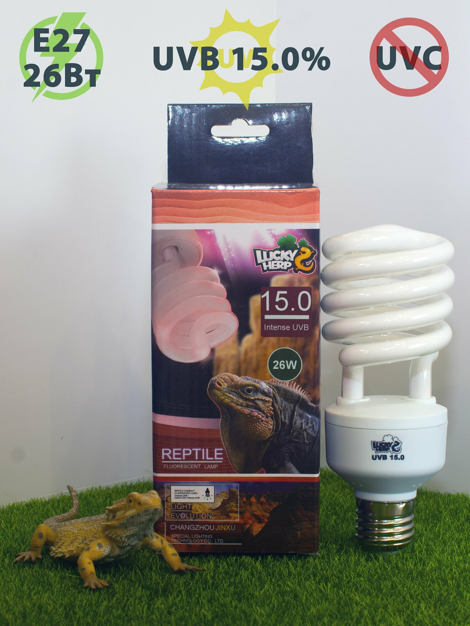 Ультрафиолетовая лампа UVB 15.0% - 26W для рептилий LuckyHerp. Цоколь Е27 интересное: