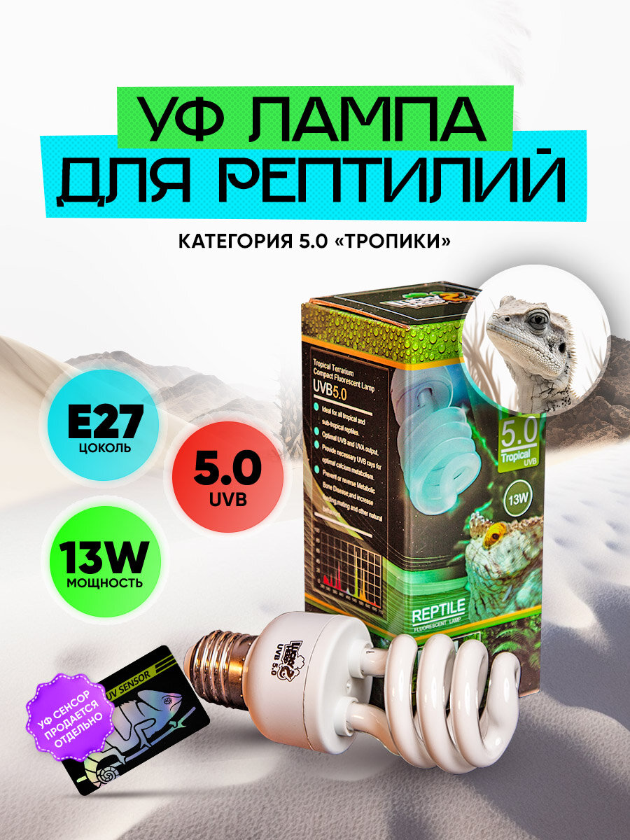 Лампа УФ для рептилий 13 Ватт 5UVB интересное:
