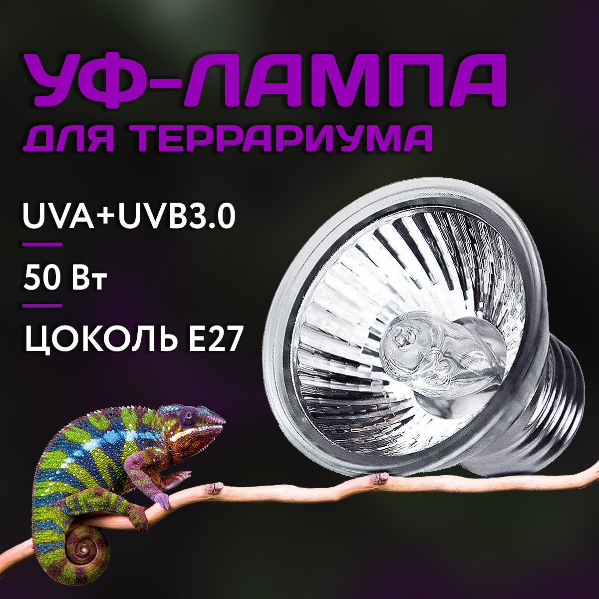 Купить Ультрафиолетовая греющая лампа для террариума 2 в 1, UVA+UVB3.0, 50 Вт, цоколь Е27