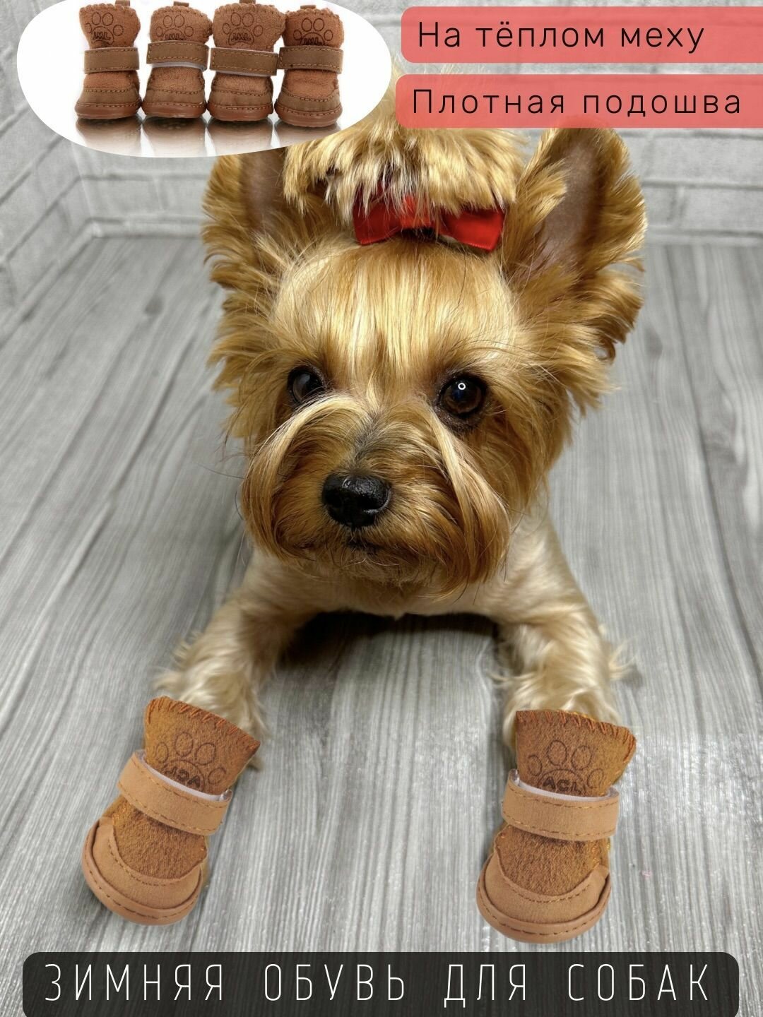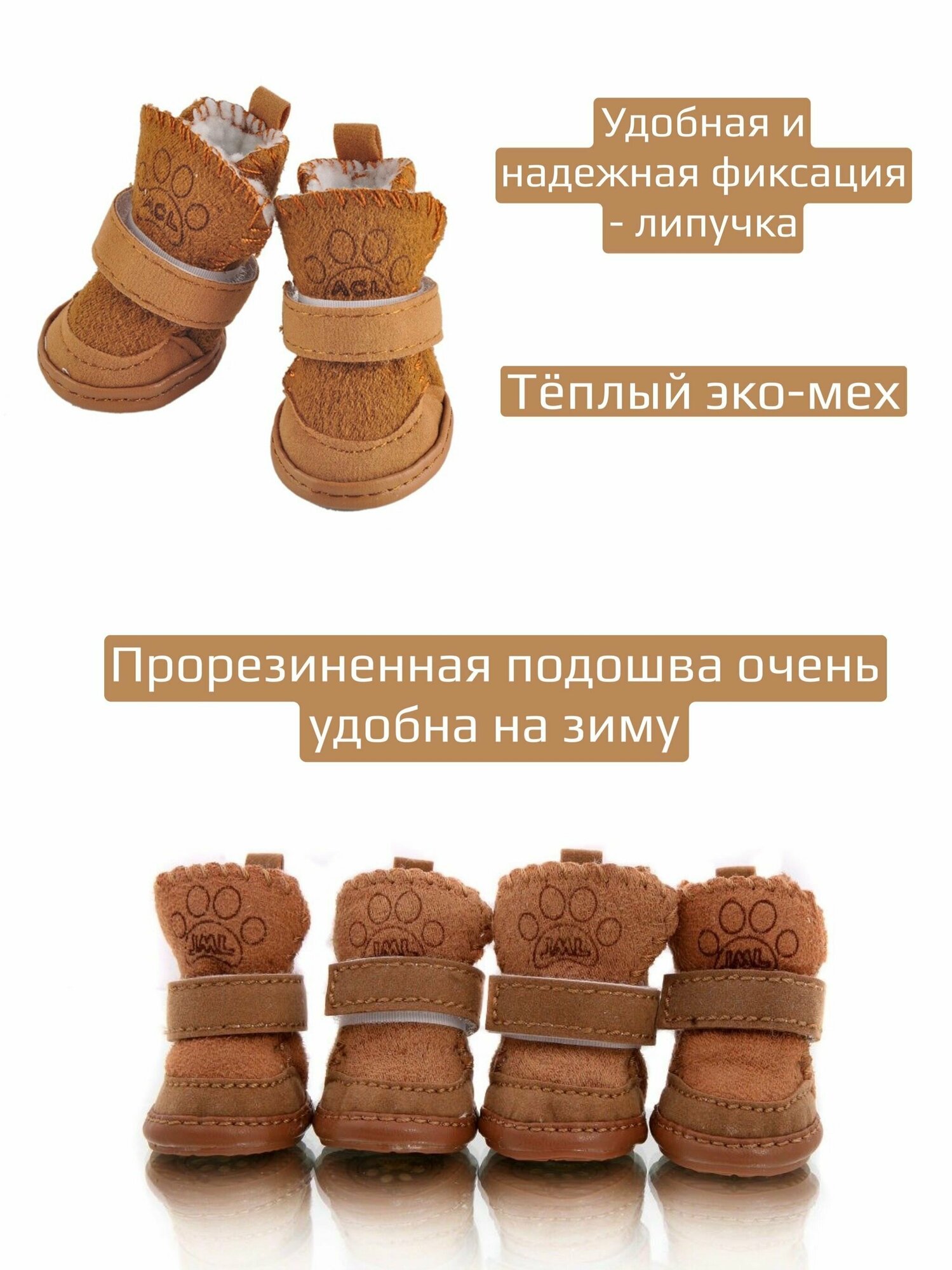 Зимняя обувь для собак на меху для малых и средних пород / Коричневые / Размер 4
