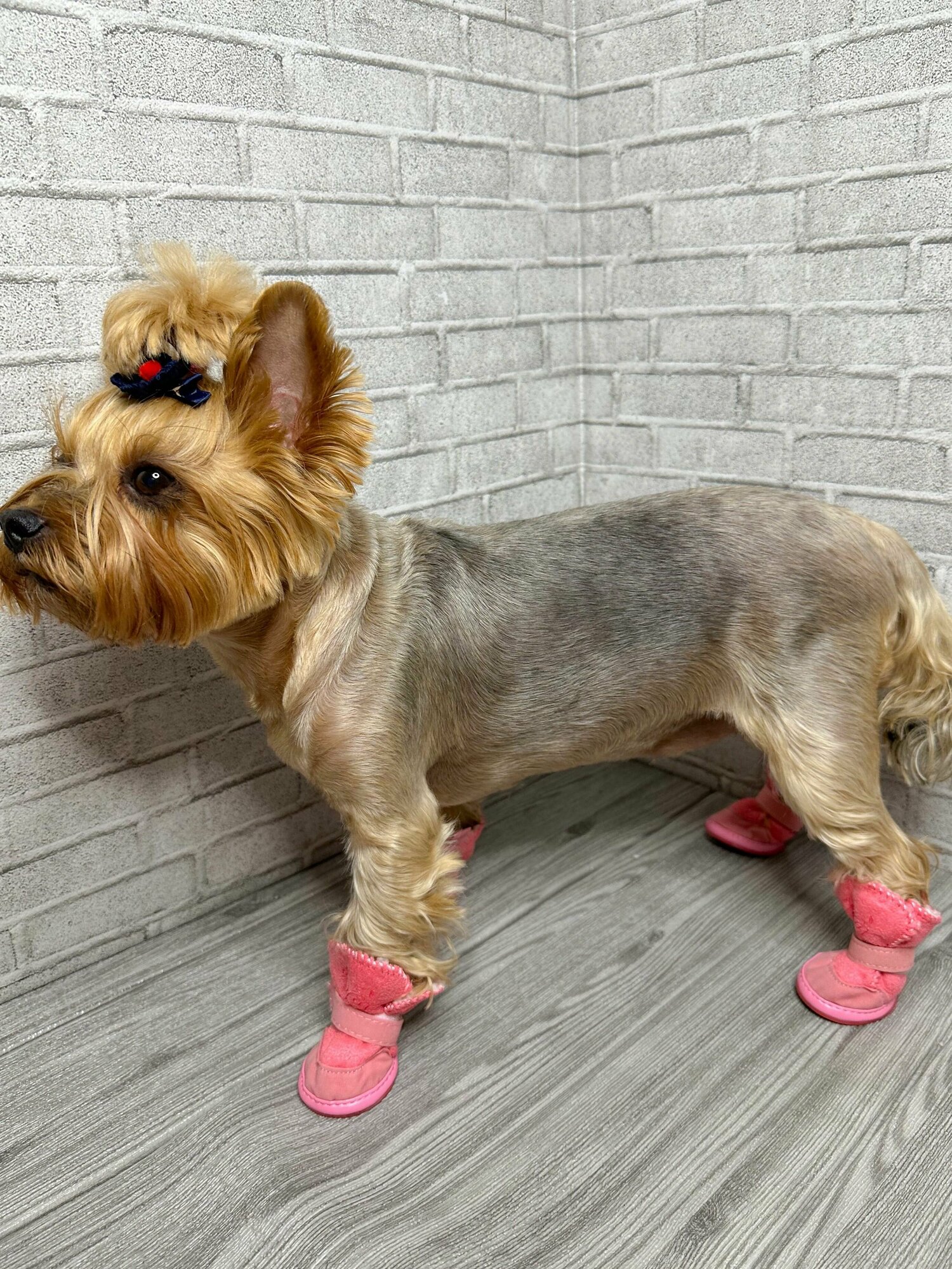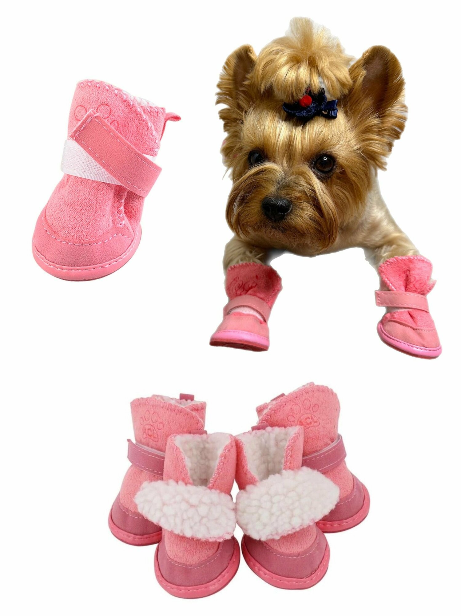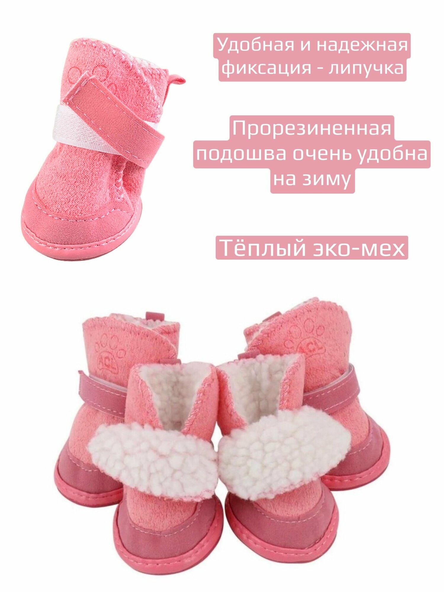 Зимняя обувь для собак на меху для малых и средних пород / Розовые / Размер 4