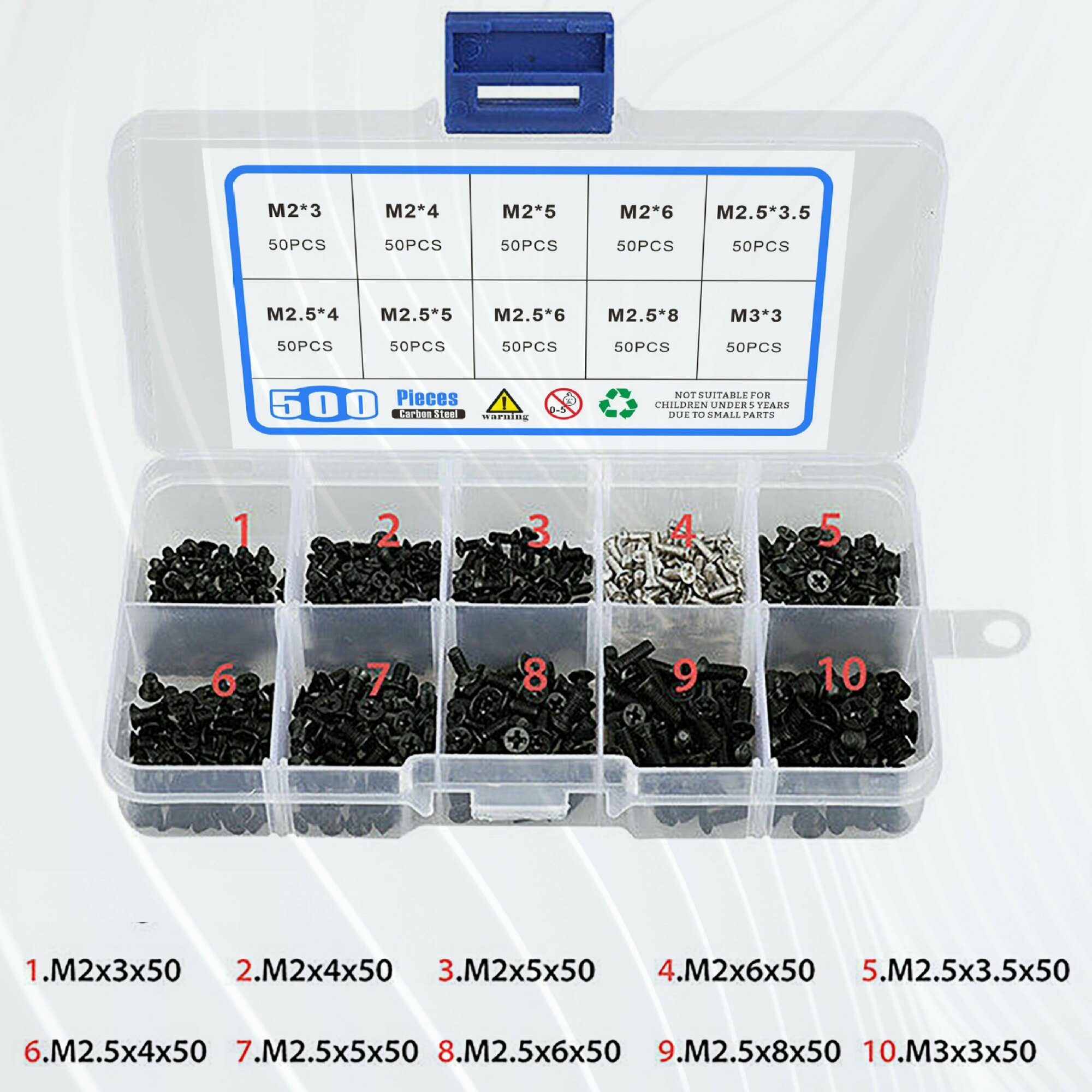 Винты для ноутбука M2 M2.5 M3, 10 видов, 500 штук в кейсе интересное: