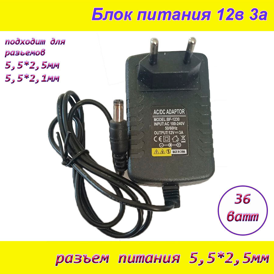 СохранитьБлок питания 12В 3А ( 12V / 3A ), сетевой адаптер универсальный , штекер 5.5x2.5мм интересное: