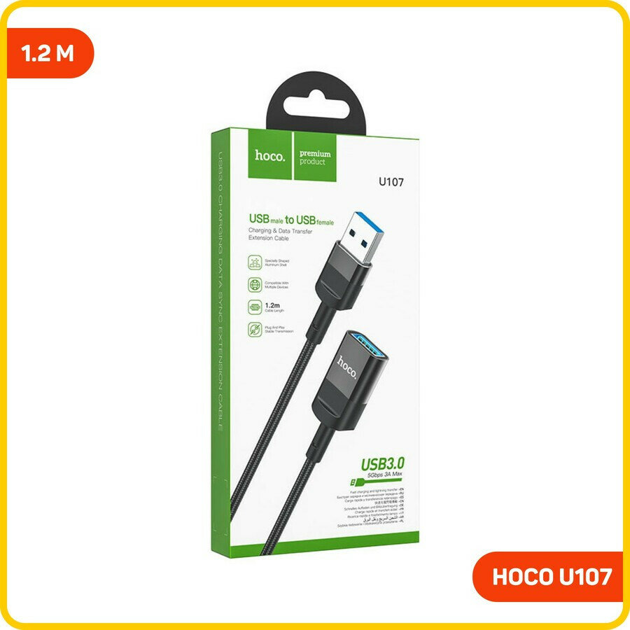 Купить Кабель-удлинитель Hoco U107, USB-USB, USB3.0, 1.2 метра, черный