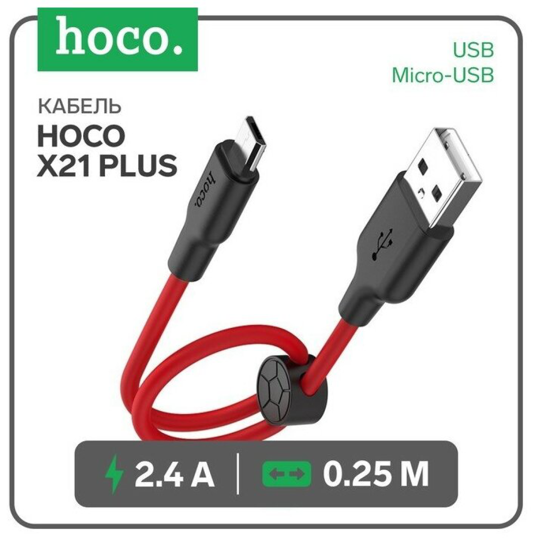 Кабель Hoco X21 Plus Micro, 2.4А 1 м, черный с красным
