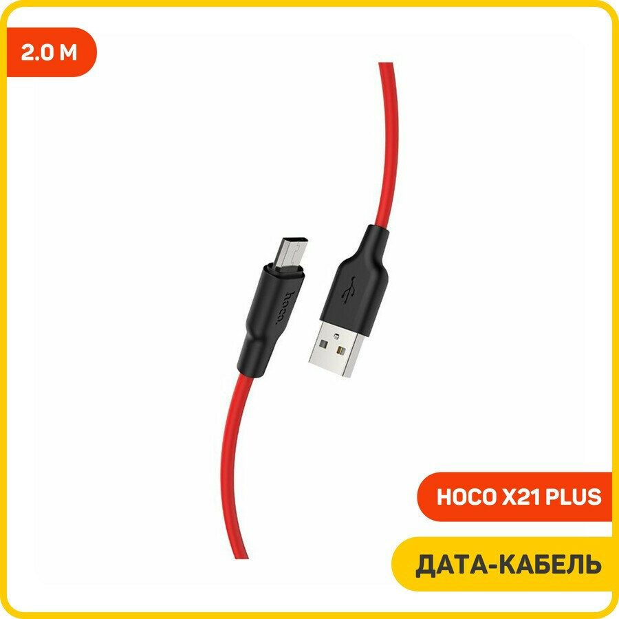 USB кабель Hoco X21 Plus Silicon Micro (L=2м) черный с красным