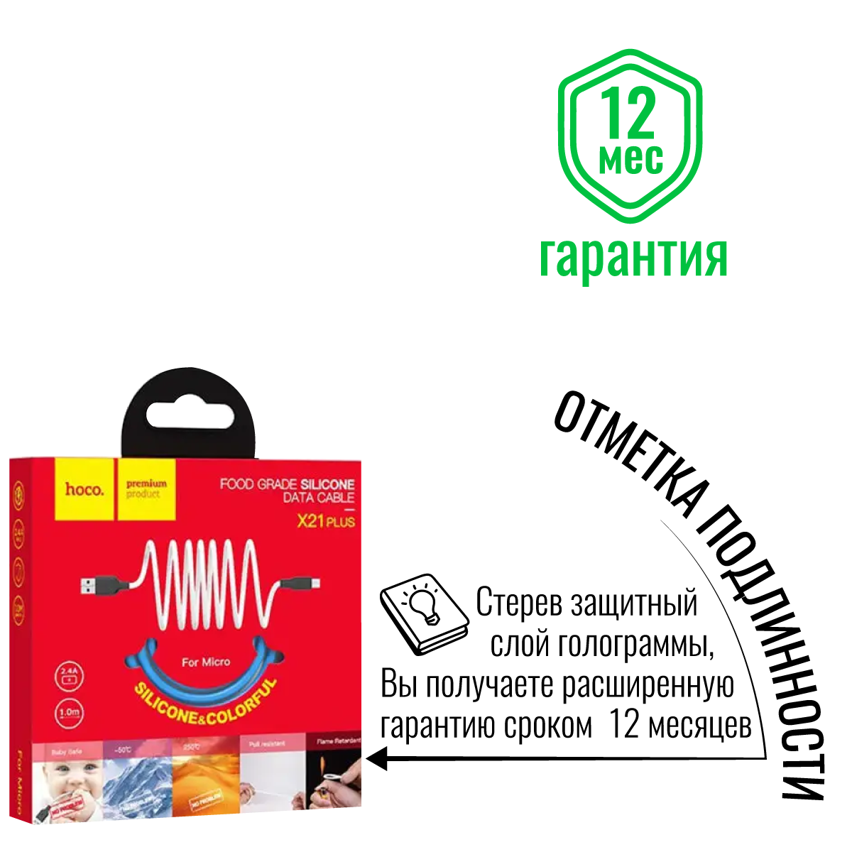 Кабель USB 2.0 A -> micro-B Hoco X21 Plus