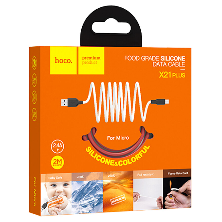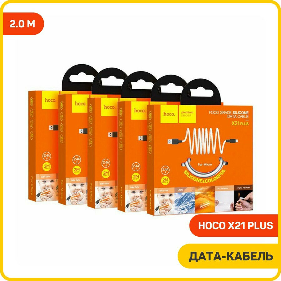 USB Кабель Micro, HOCO, X21 Plus, 2М, силиконовый, черно-белый