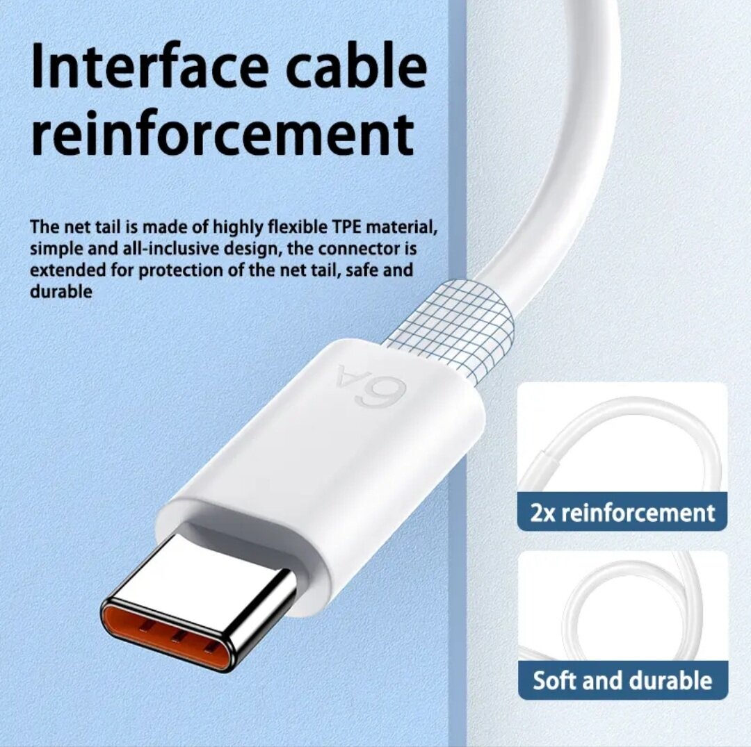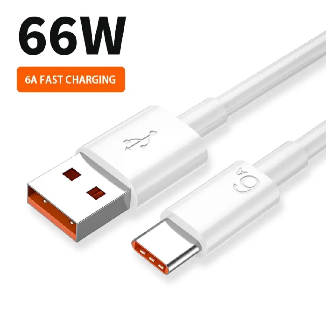 Кабель зарядный USB-Type-C 6 Aмпер, 66 Ватт, 1.5 метра, быстрая зарядка (Белый) для Huawei, Xiaomi, Samsung, Oppo интересное: