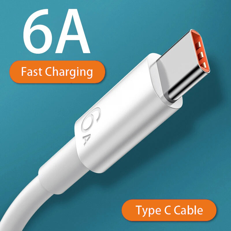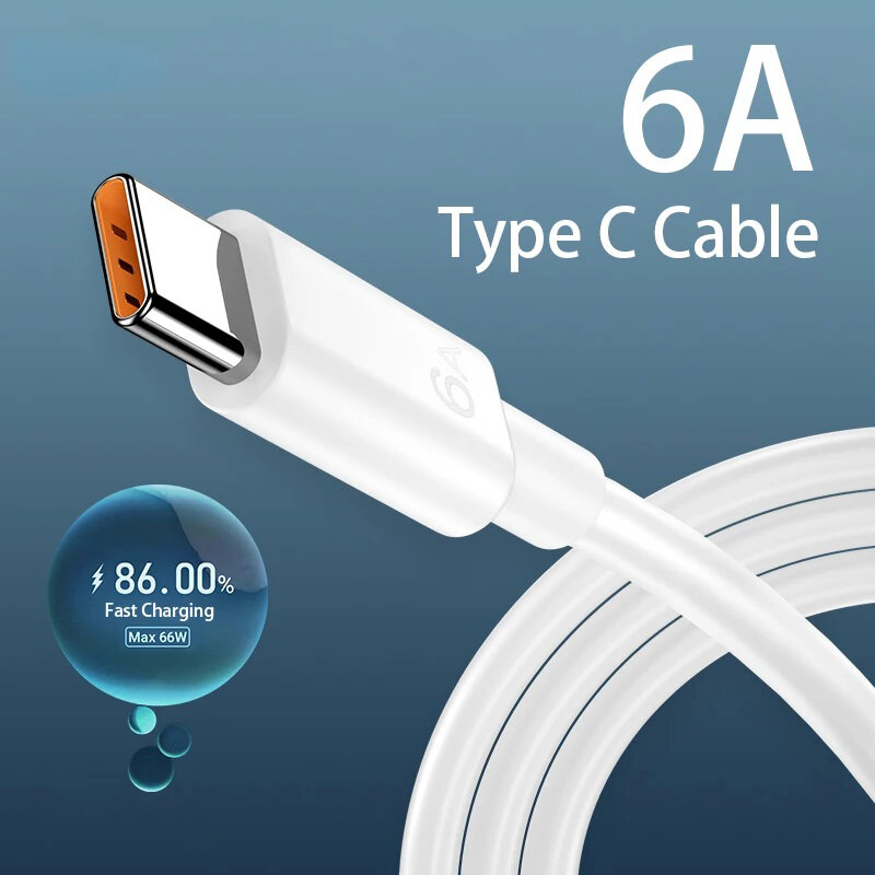 Купить Кабель зарядный USB-Type-C 6 Aмпер, 66 Ватт, 1.5 метра, быстрая зарядка (Белый) для Huawei, Xiaomi, Samsung, Oppo
