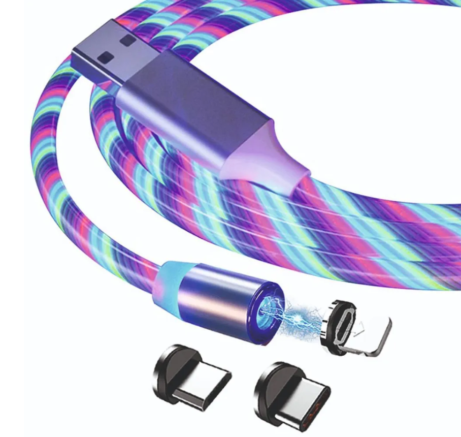 Магнитный светящиеся розовый кабель 3в1/Lighting-Type C-Micro USB интересное: