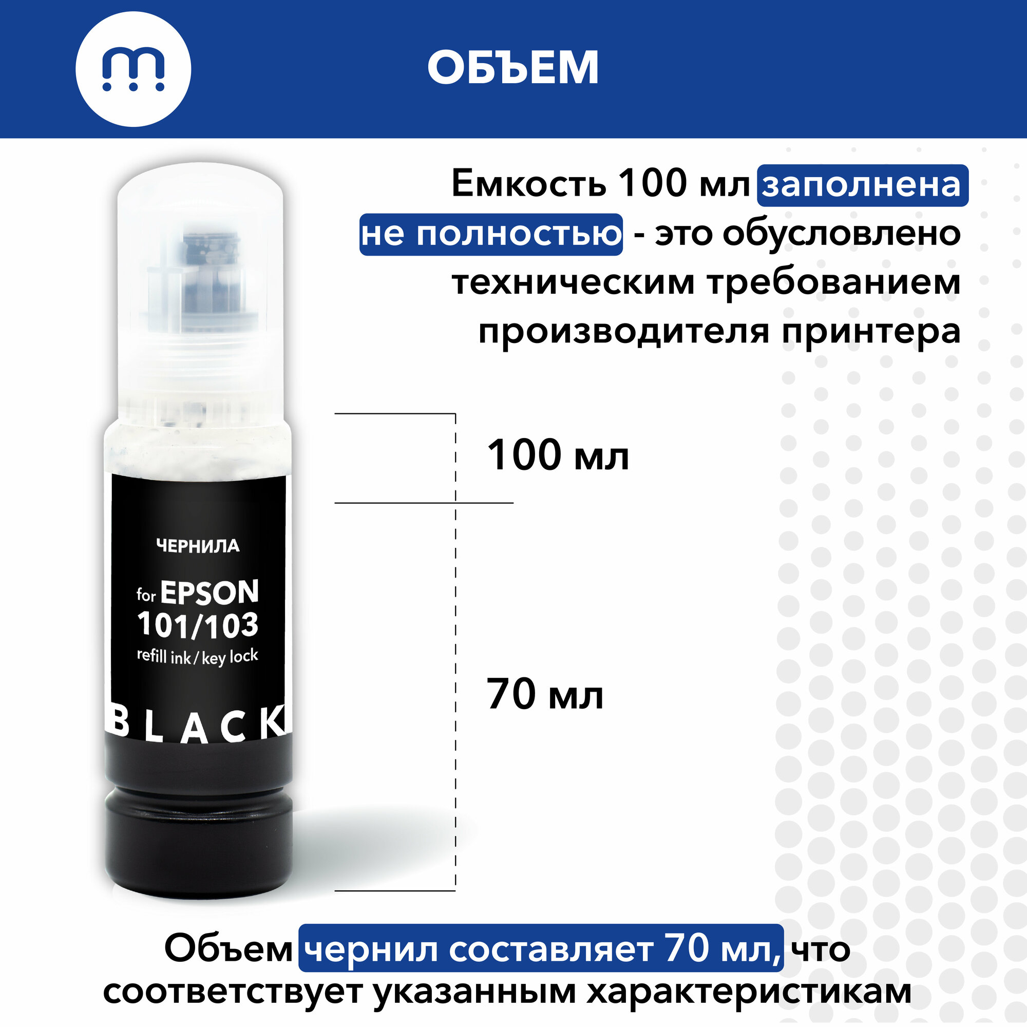 Чернила для принтера краска для Epson Epson 101/103, Key Lock, черный, 70мл, Inkmaster