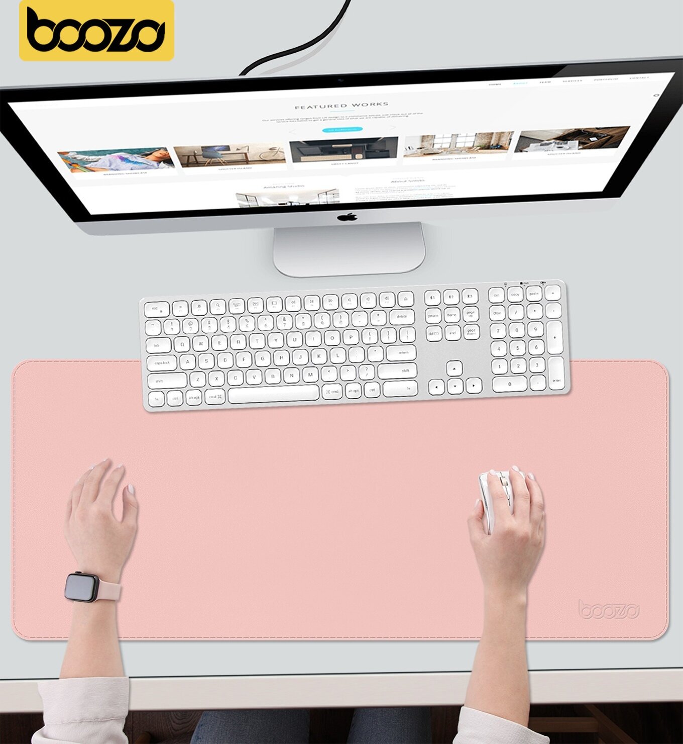 Купить Коврик для мышки большой BOOZO Desk mate s, кожаный коврик для мыши, коврик для мышки компьютерный, розовый