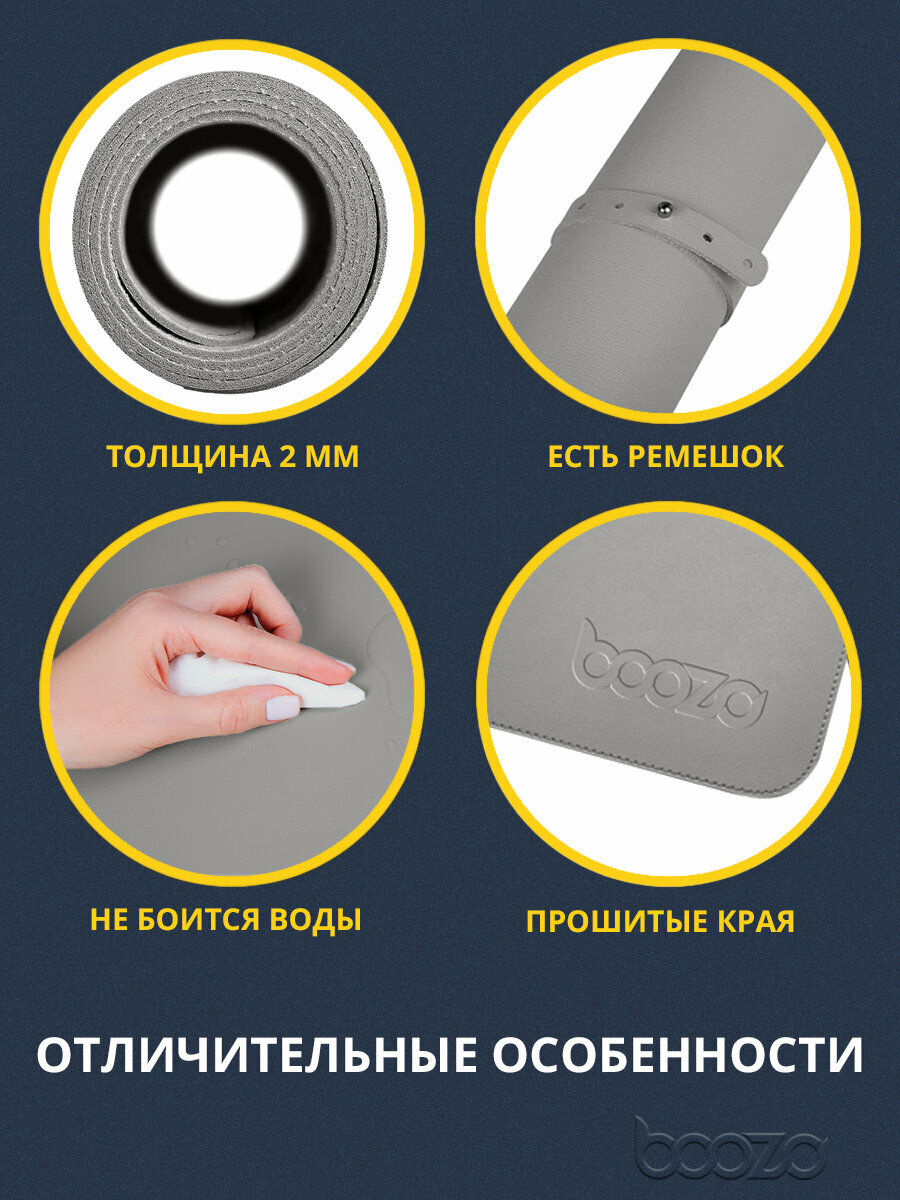 Коврик для мышки большой BOOZO Desk mate s, кожаный коврик для мыши, коврик для мышки компьютерный, серый