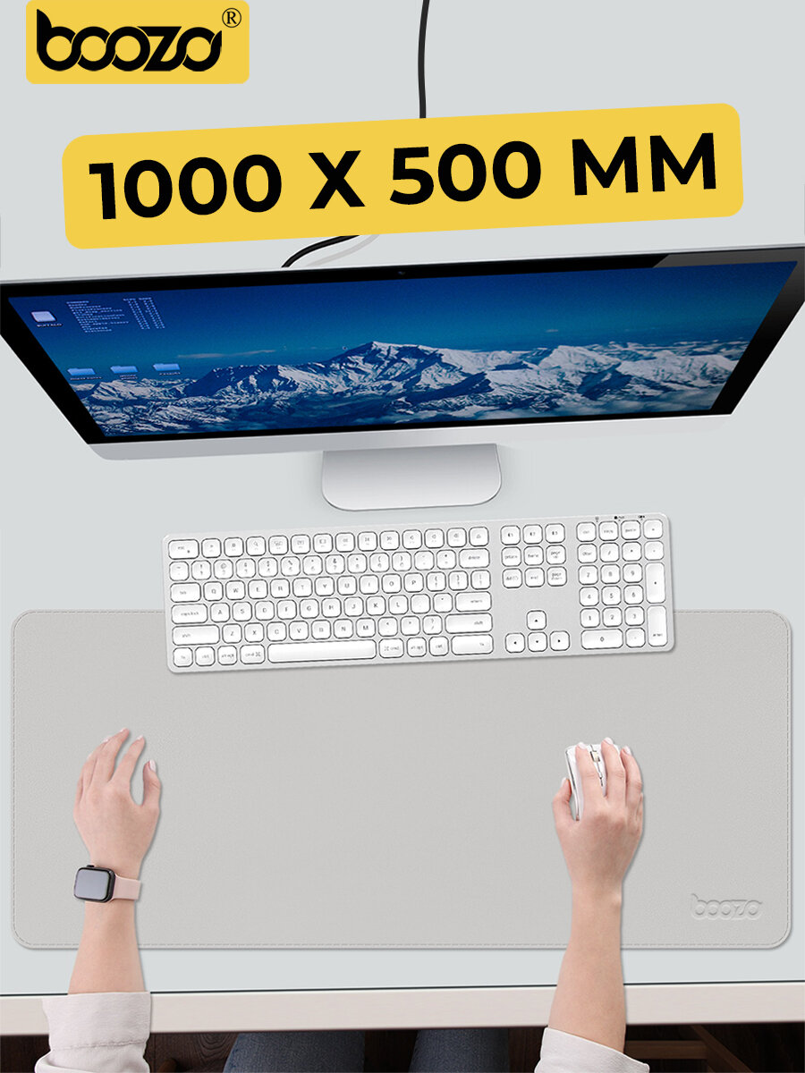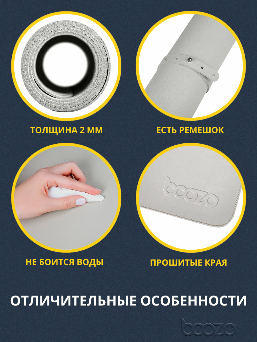 Коврик для мышки большой BOOZO Desk mate s, кожаный коврик для мыши, коврик для мышки компьютерный, серый