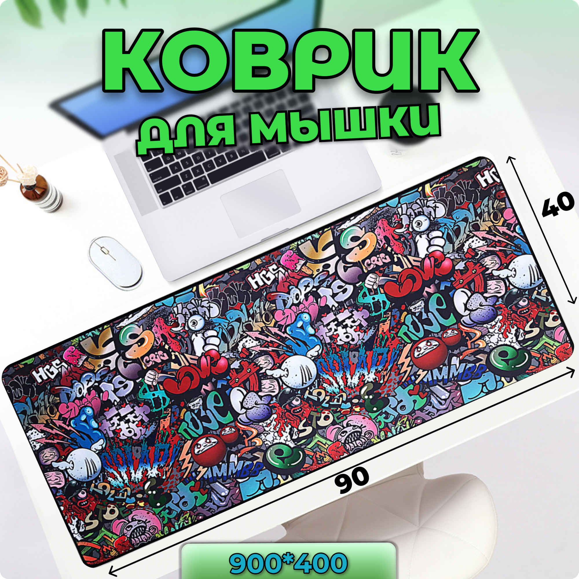Купить Коврик для мышки, большой, игровой, влагостойкий, Speed Control, коврик для мыши, Граффити, размер Большой XXL 900*400 для клавиатуры и мышки