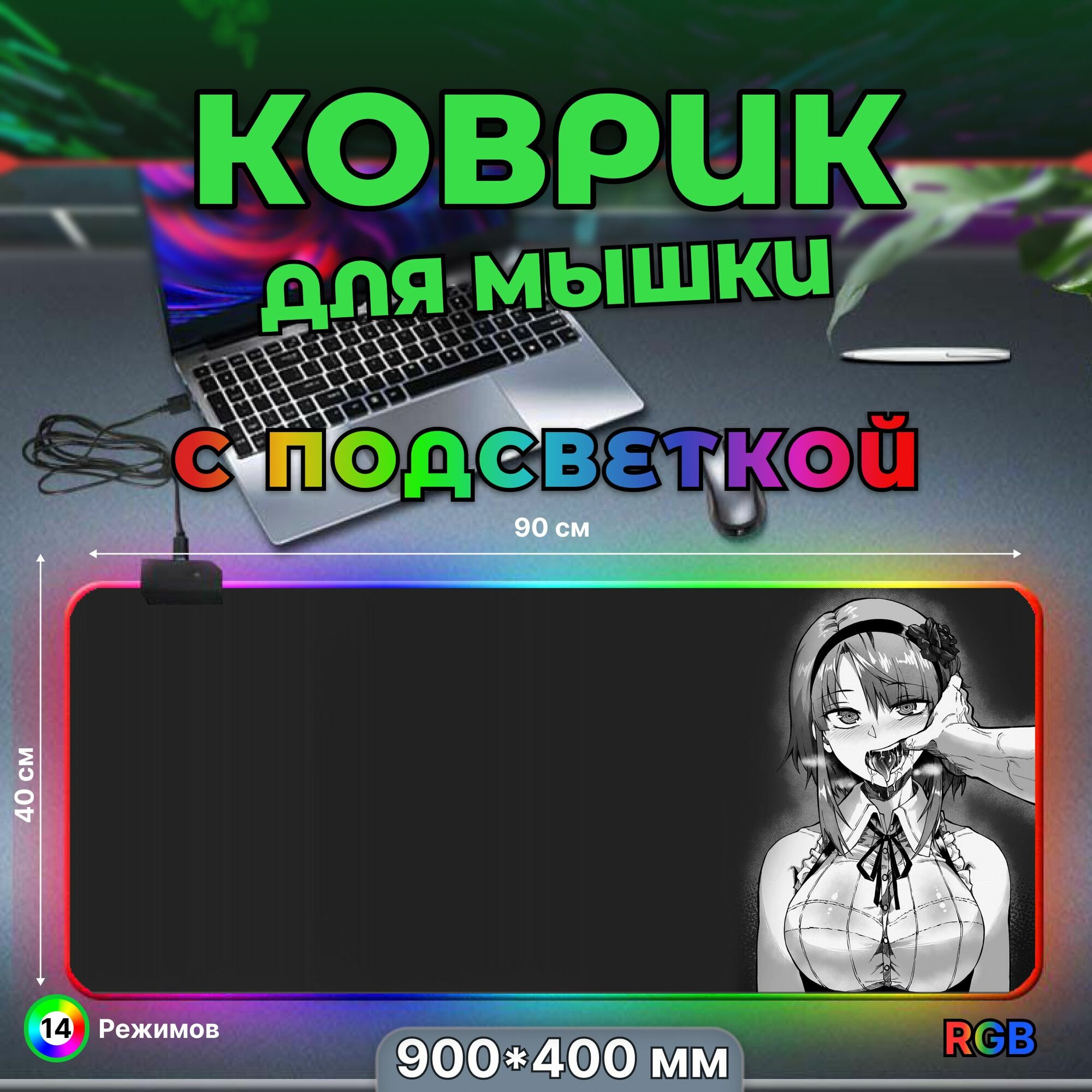 Коврик для мышки, игровой большой с подсветкой RGB 14 режимов 7 цветов, влагостойкий, Аниме, Ахегао 1 900*400*3 коврик для мыши