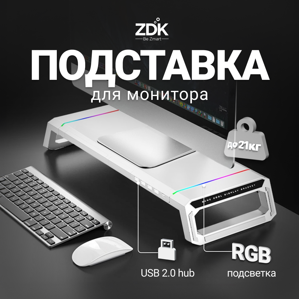 Подставка Zdk под монитор T1 с USB и подставкой для смартфона черная (T1B )