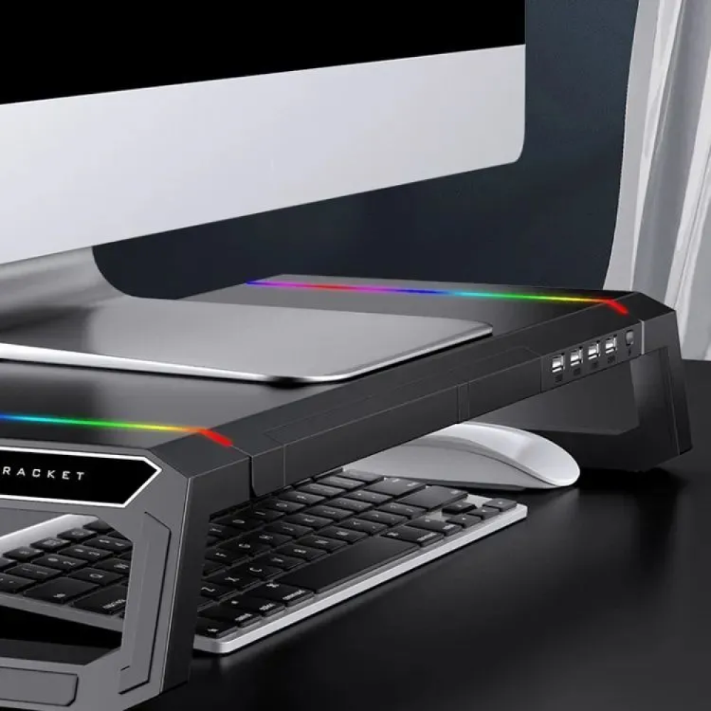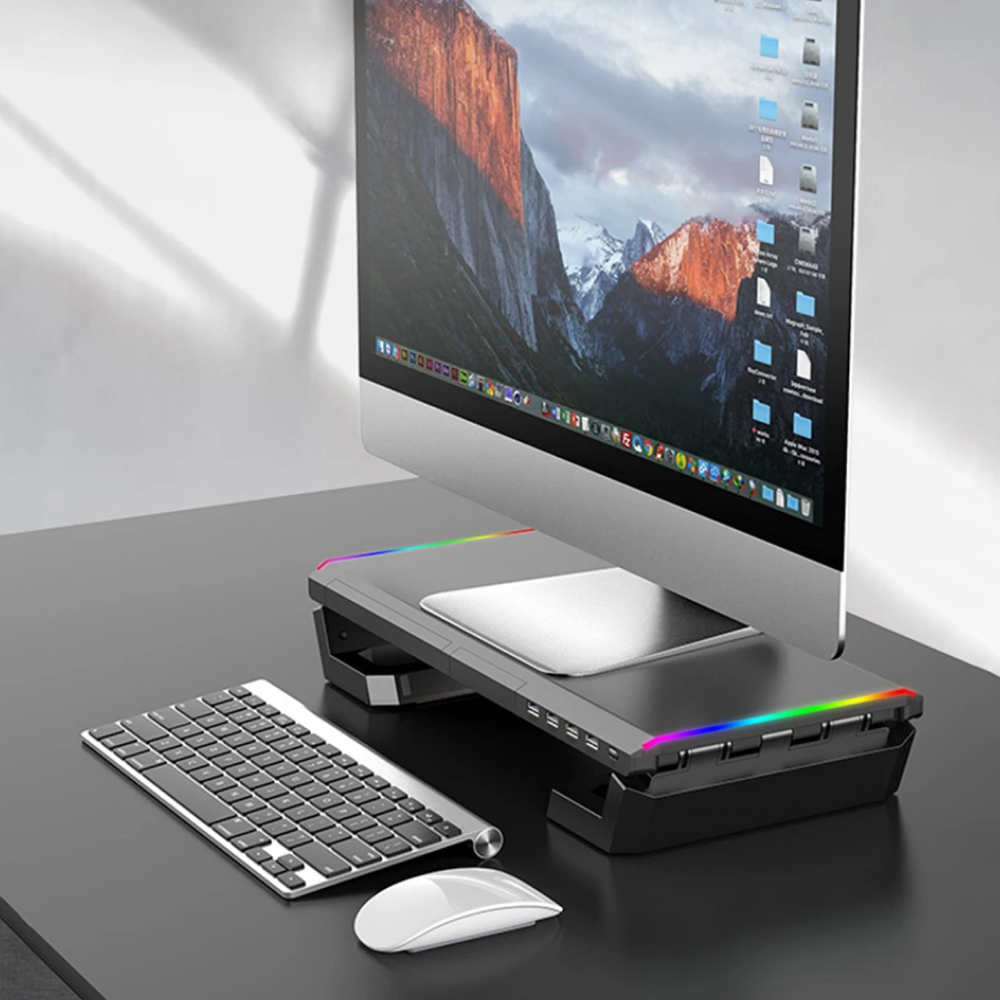 Подставка для монитора настольная складная / органайзер полка под монитор для компьютера с RGB подсветкой USB, с выдвижными ящиками для смартфона