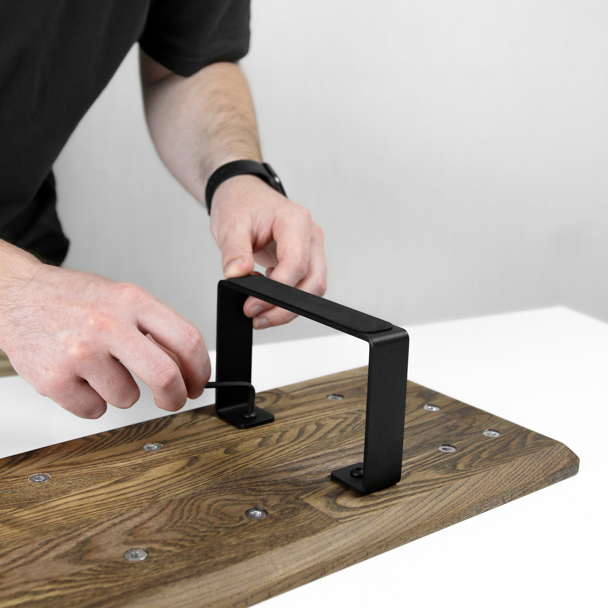 Купить Настольная подставка KUB для двух мониторов из дерева, темный дуб.