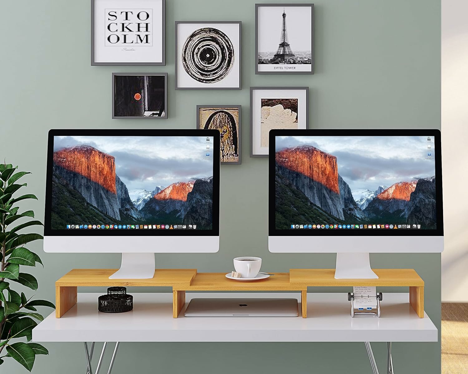 Купить Подставка под 2 монитора на рабочий стол, настольный органайзер для монитора, ноутбука, моноблока, дерево