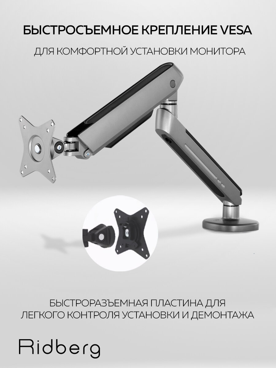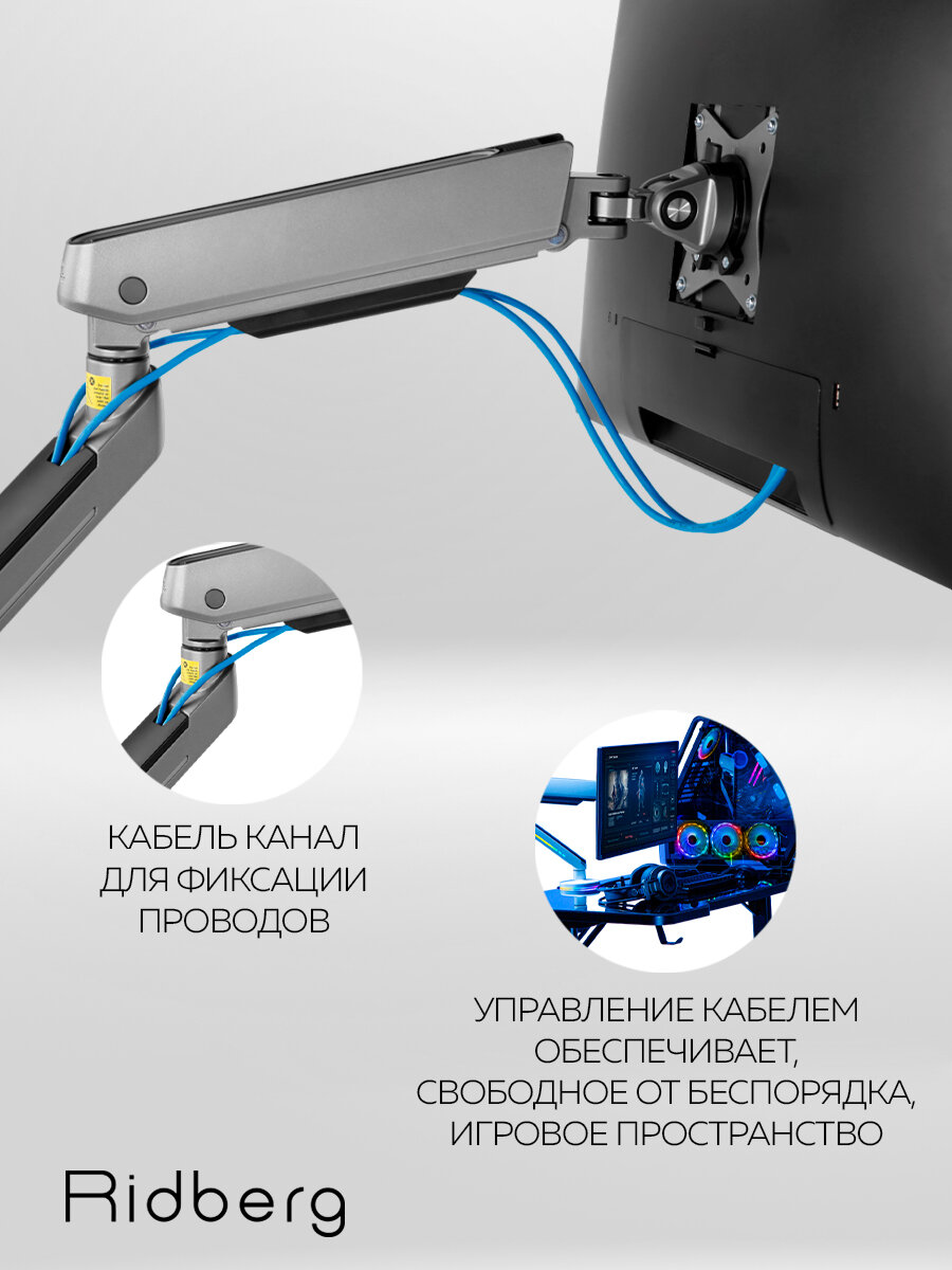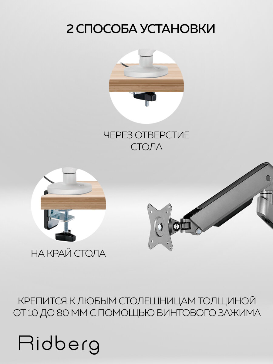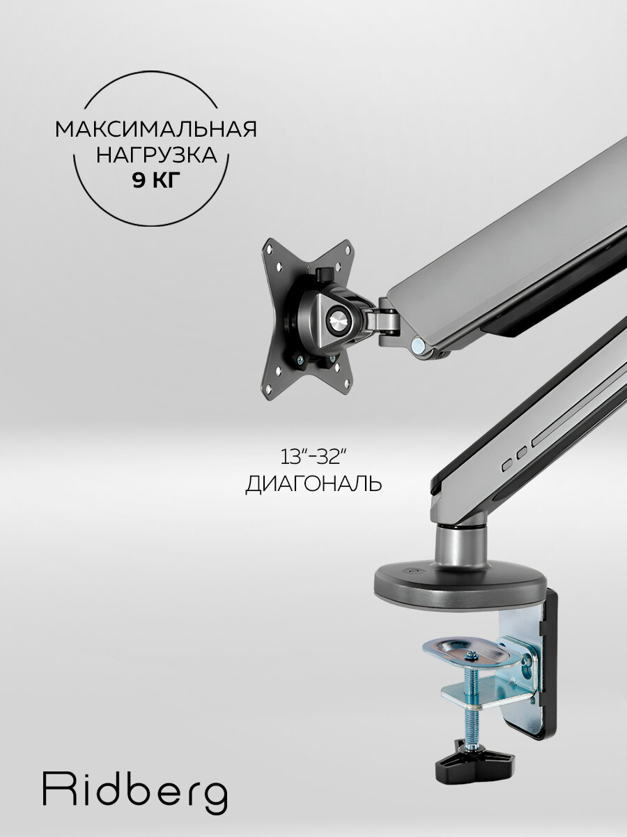 Кронштейн для монитора 17"-32" Ridberg Monitor Arm LDT54-C012L (Grey) интересное: