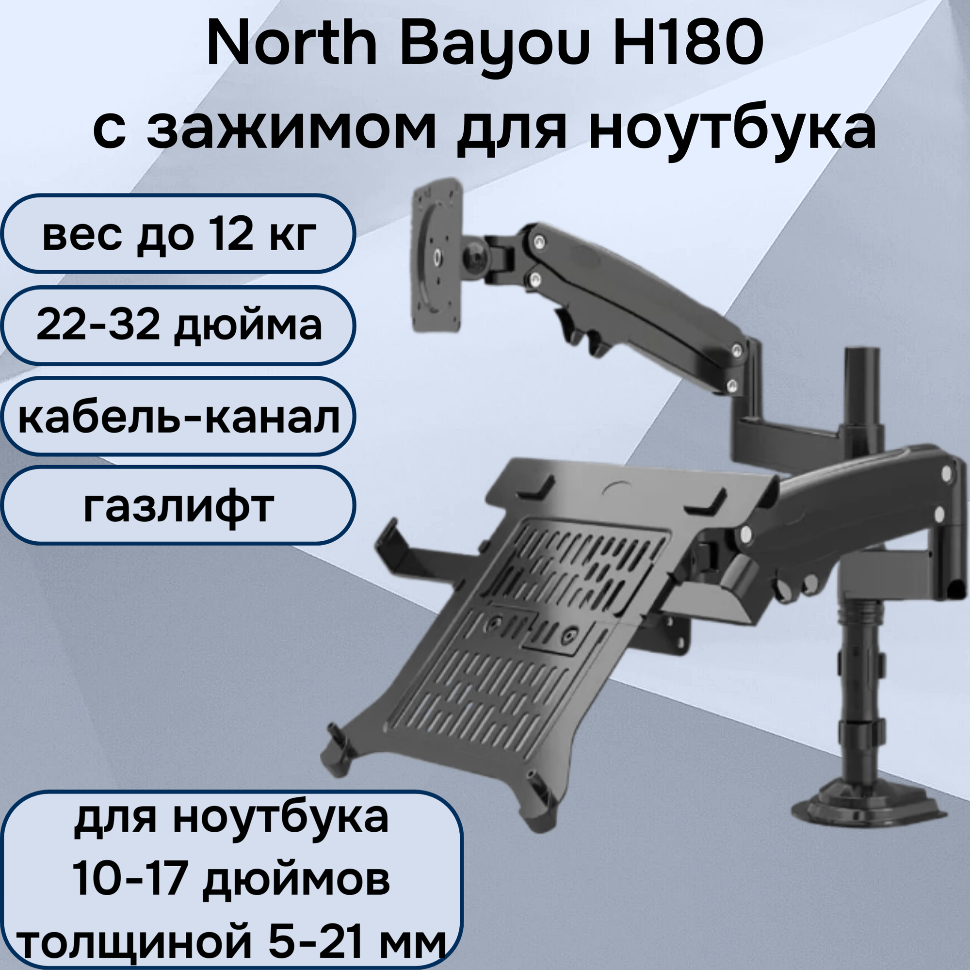 Настольный кронштейн для двух мониторов 17-30" до 9 кг North Bayou H180 с держателем ноутбука 10-17", черный матовый
