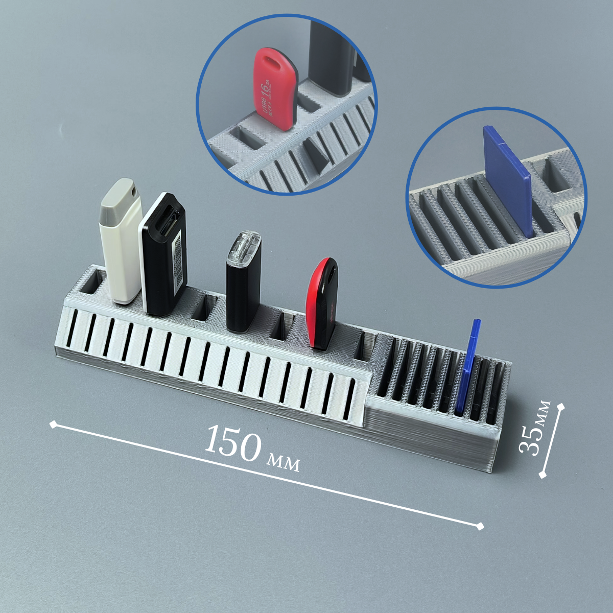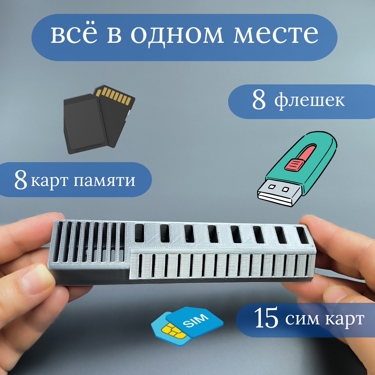 Подставка для карт памяти и флешек - органайзер серебристый интересное:
