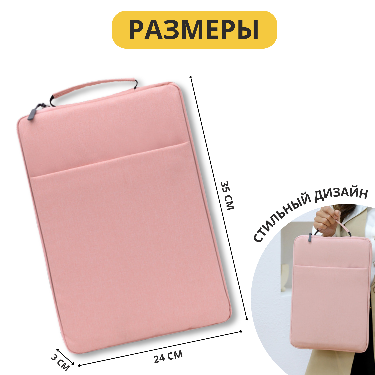 Чехол для ноутбука с дополнительным отделением и ручкой 13-14" / Сумка для ноутбука (розовый) интересное: