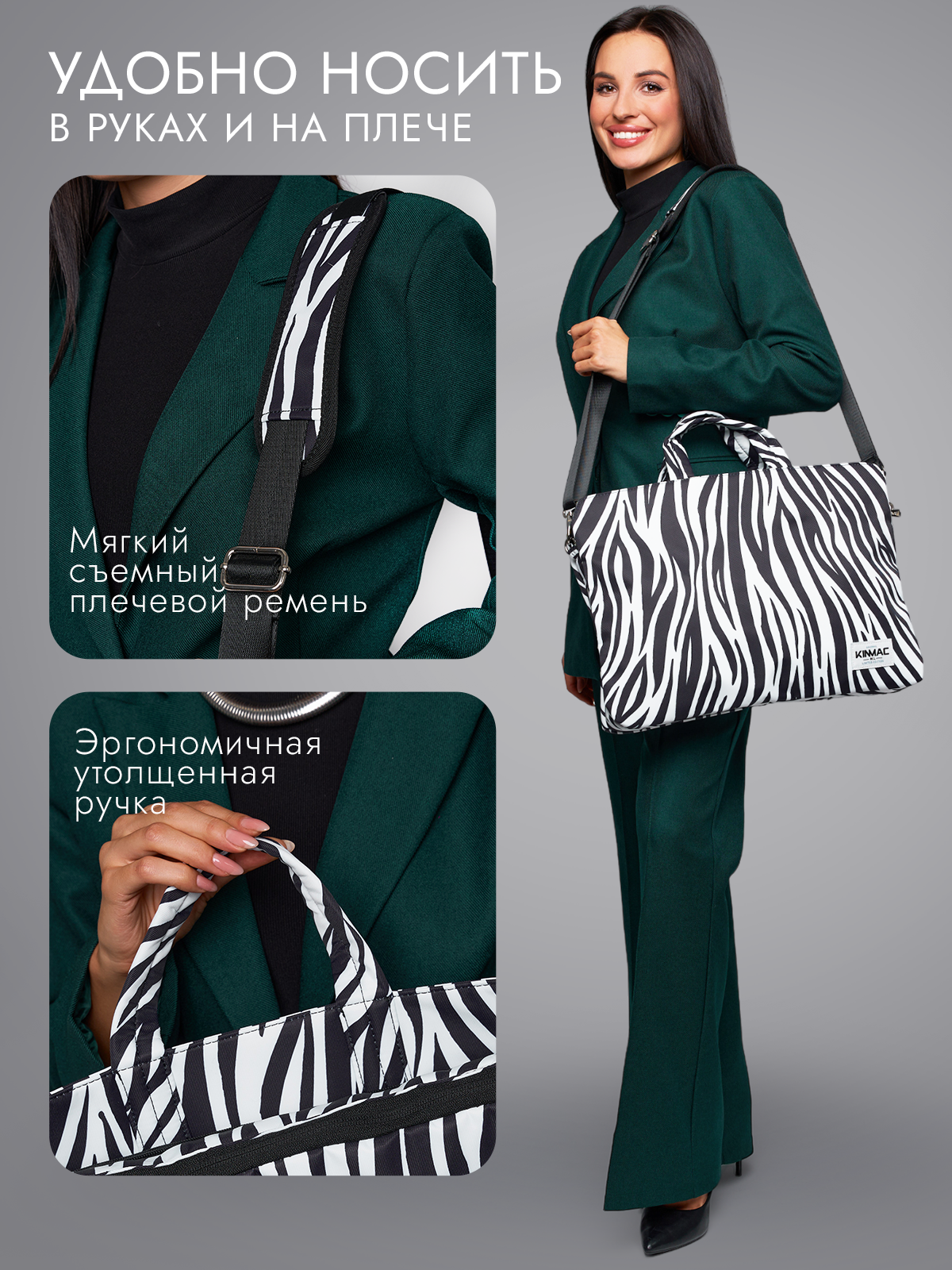 Сумка для ноутбука 15.6, 16 и 17 дюймов KINMAC с ремнем на плечо и 3 отделениями (Зебра) интересное: