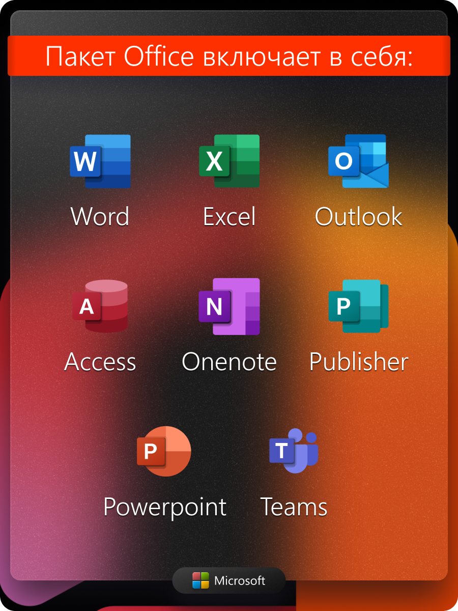 | Состав пакета | Microsoft Word 2016, Microsoft Excel 2016, Microsoft PowerPoint 2016, Microsoft Outlook 2016, Microsoft Publisher 2016, Microsoft Access 2016, Microsoft Publisher 2016, Microsoft OneNote 2016, Microsoft Outlook 2016 |