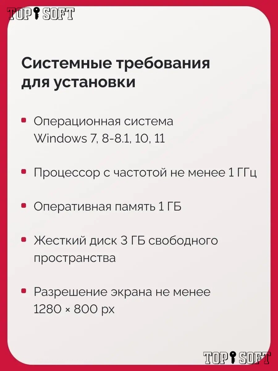 | Совместимость/дополнительные требования | Дополнительные требования: .NET Framework: • Версия 3.5 (может потребоваться установка). Интернет: • Для установки и активации продукта, а также для доступа к обновлениям и использованию некоторых функций требуется интернет-соединение. |