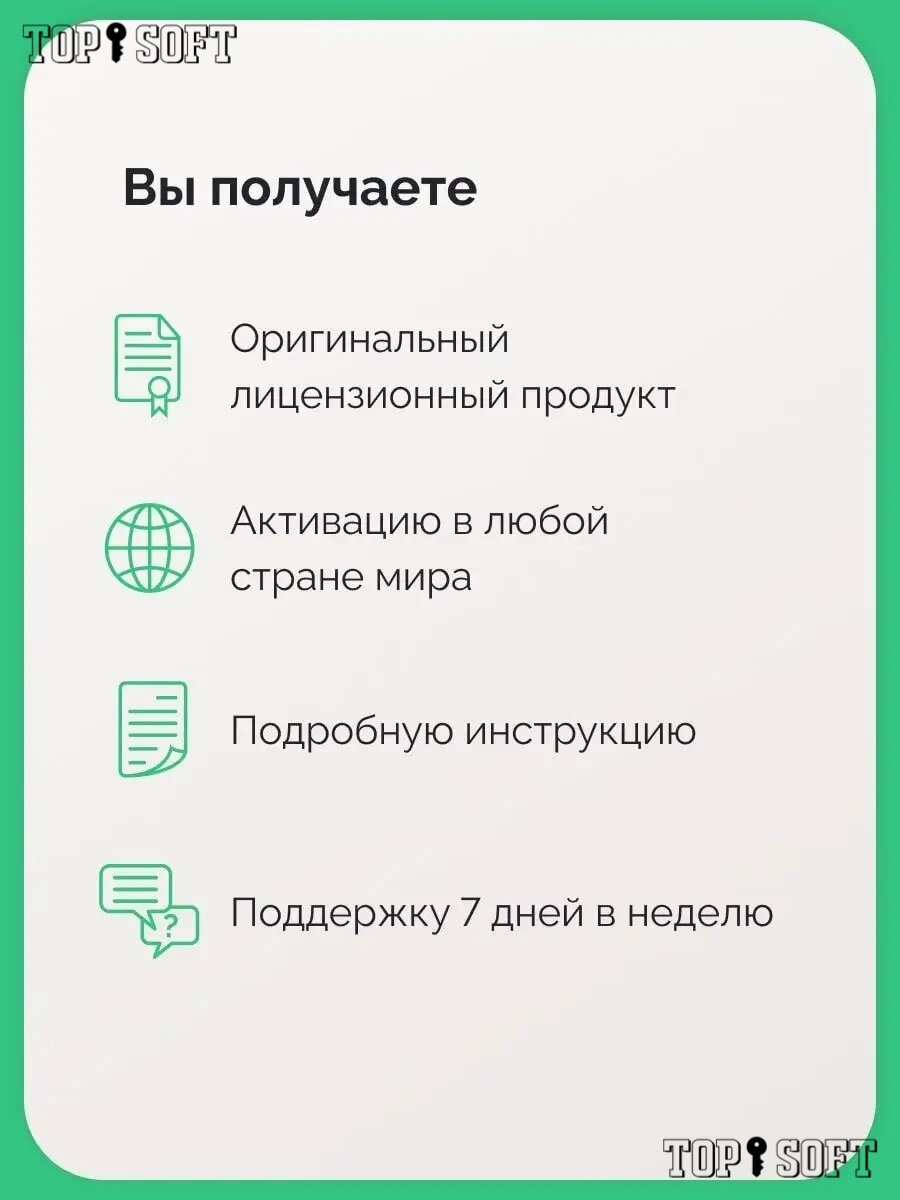 | Состав пакета | Дистрибутив. Ключ активации. Инструкция по установке и активации. Техническая поддержка. |