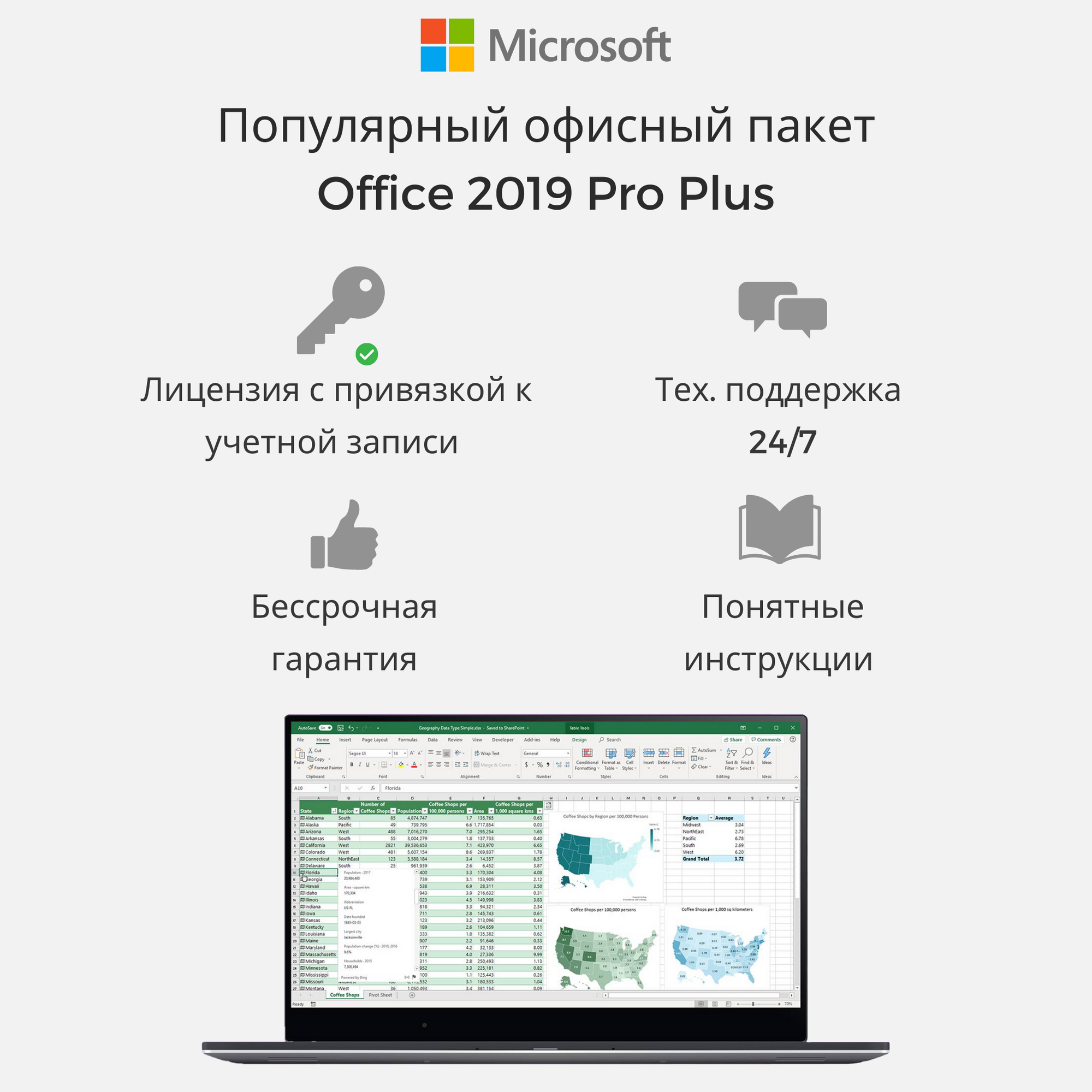 Microsoft Office 2019 Professional Plus, для 1 ПК (привязка к учетной записи), Box Slider с USB-носителем интересное: